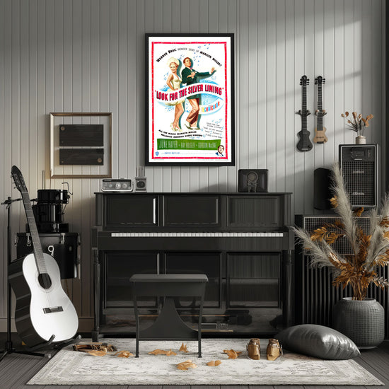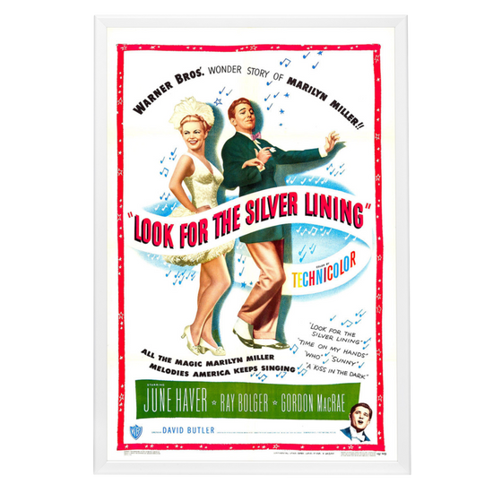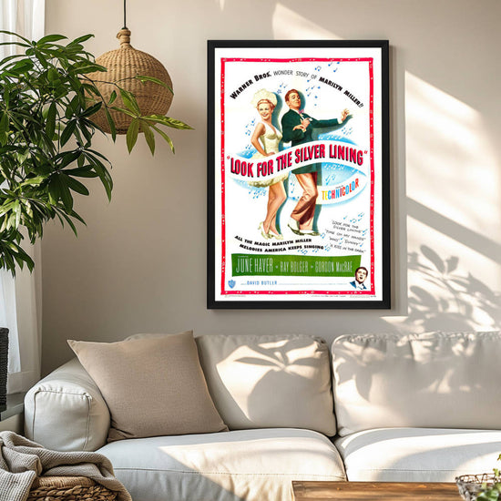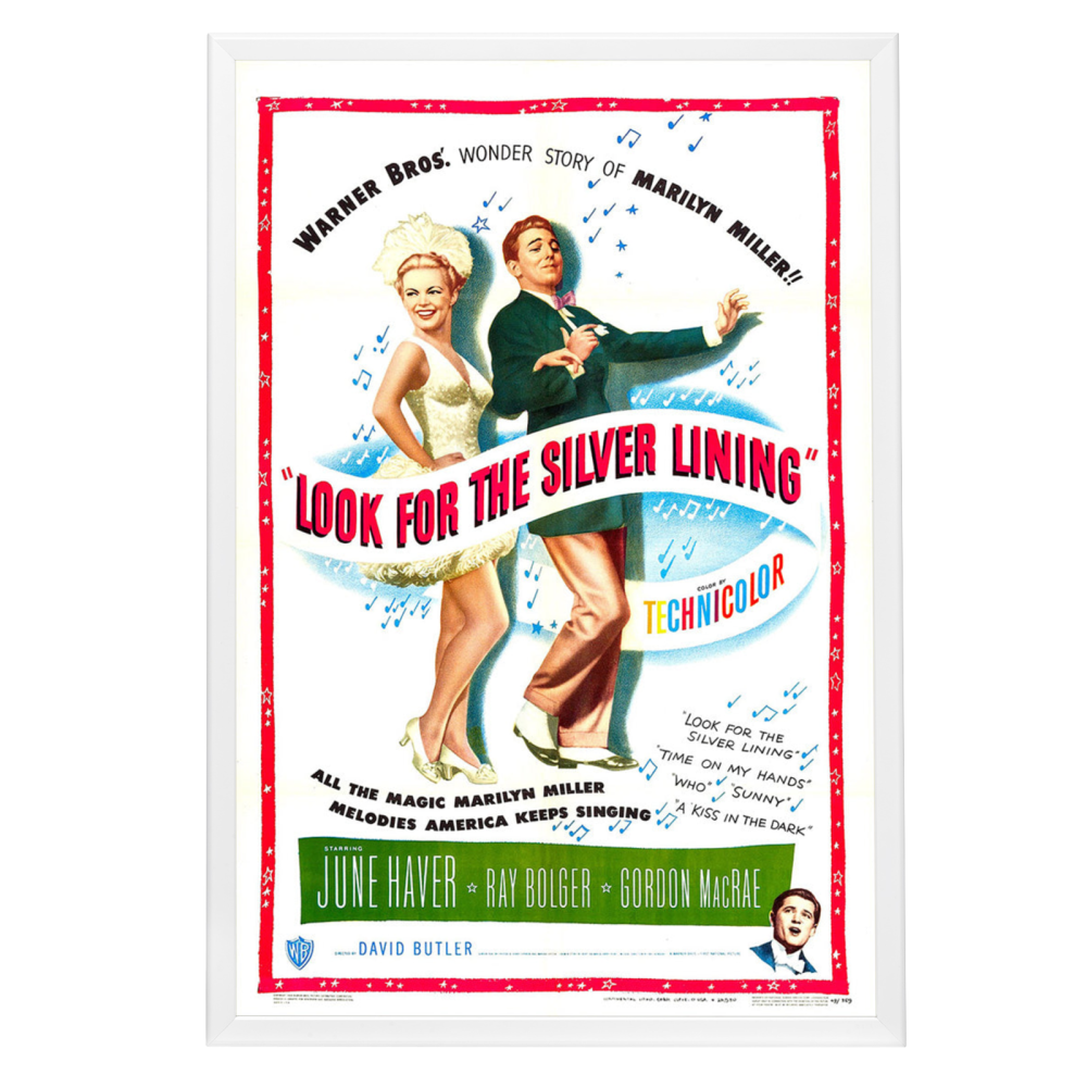 Embrace the nostalgic glamour of "Look for the Silver Lining," a 1949 cinematic gem that captured the hearts of an entire generation. This framed movie poster, featuring June Haver as the radiant Marilyn Miller, is a tribute to the film's enduring legacy and the golden age of Hollywood musicals. Boasting vibrant colors and intricate details, this high-quality reprint epitomizes the film's upbeat spirit and the remarkable life story of the Broadway star it portrays.