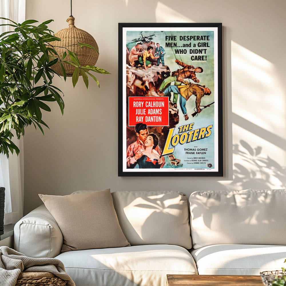 Own a piece of cinema history with the "Looters" (1955) framed poster in a Snapezo frame, featuring clear/antiglare covers for a lasting showcase.