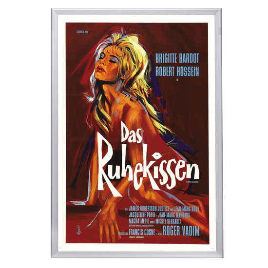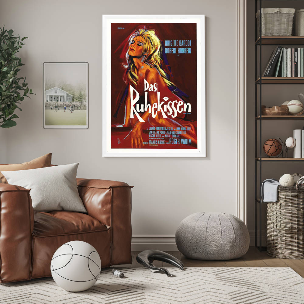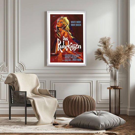 Own a piece of French New Wave cinema with the high-quality reprint of the "Love On A Pillow" (1962) poster in a premium Snapezo frame. Classic allure meets modern elegance.
