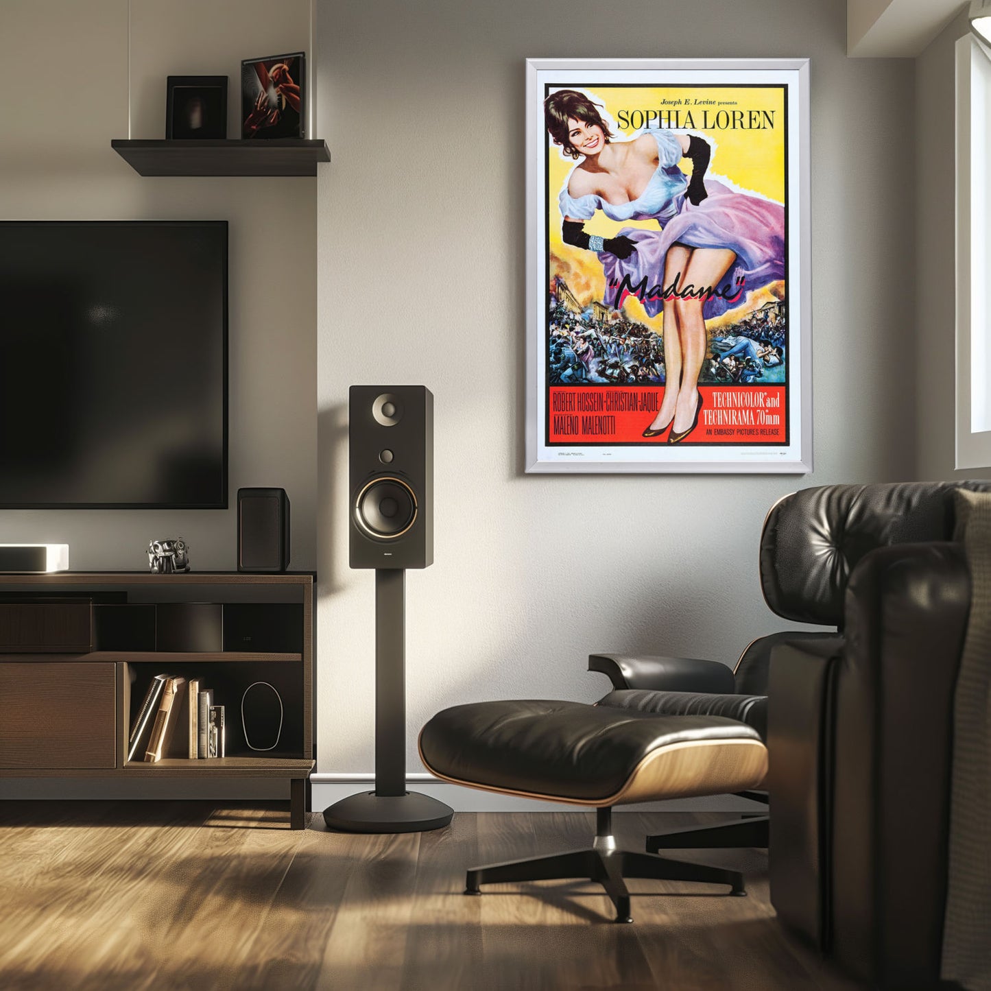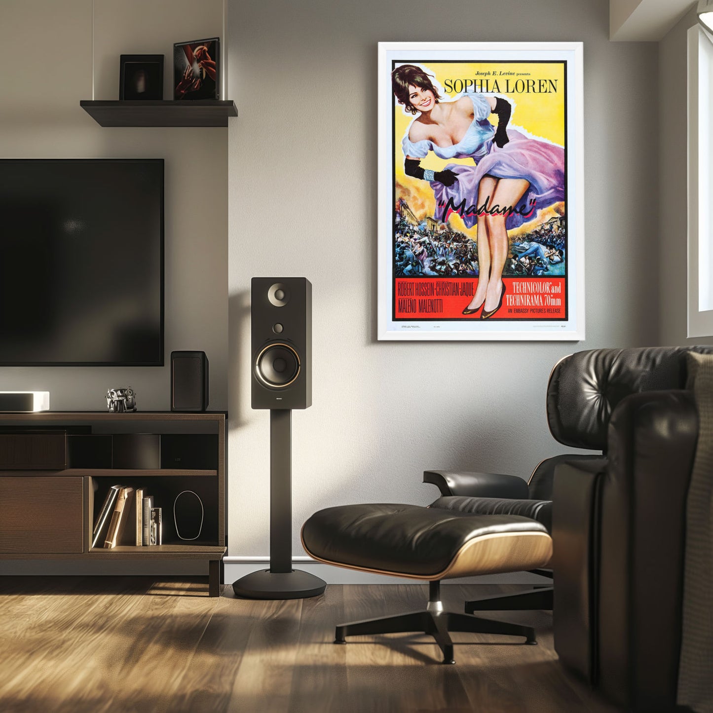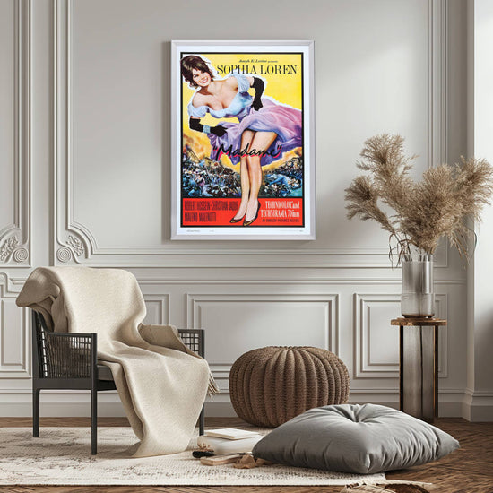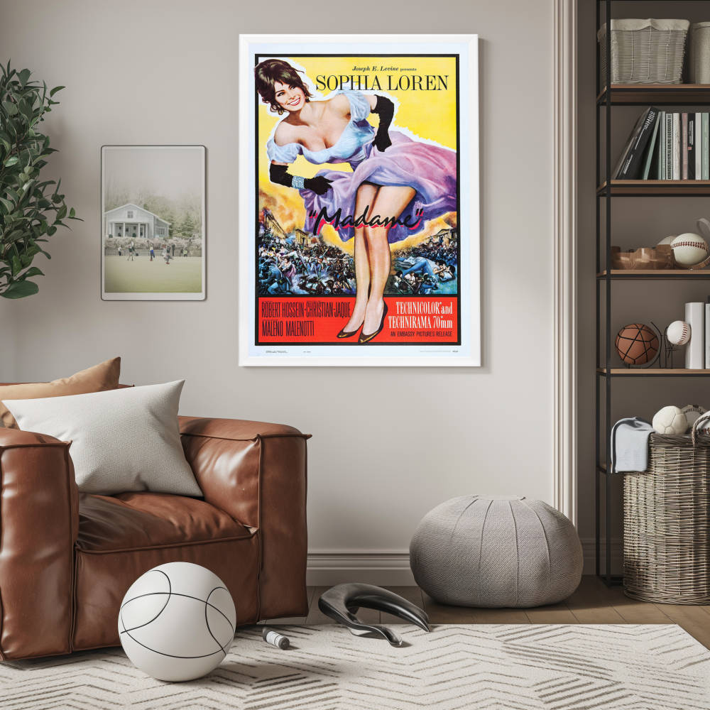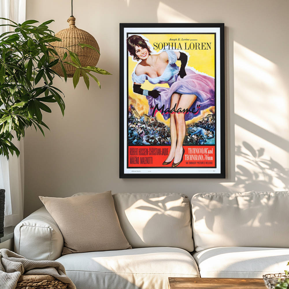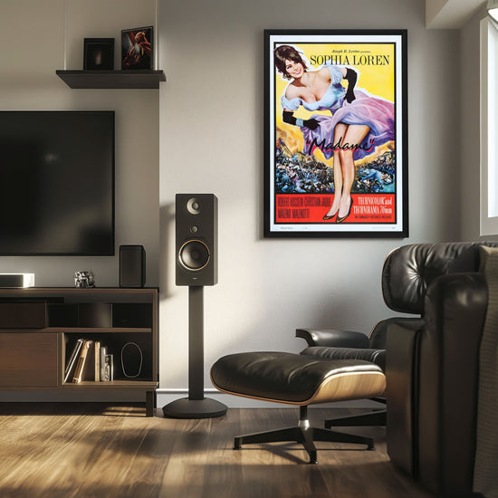 Sophia Loren shines in the high-quality reprint of the iconic "Madame" (1961) movie poster, elegantly showcased in a Snapezo frame. A masterpiece for cinephiles.