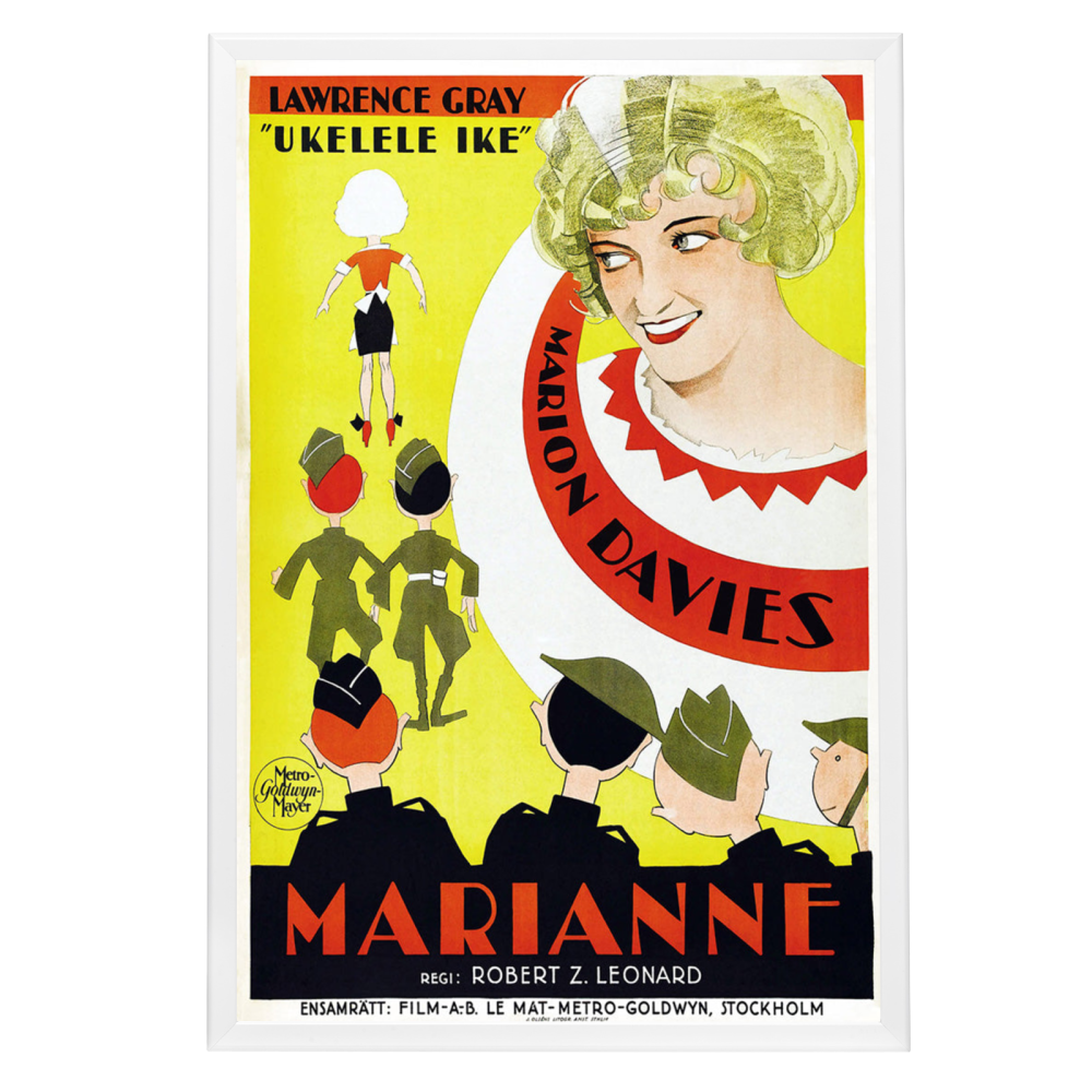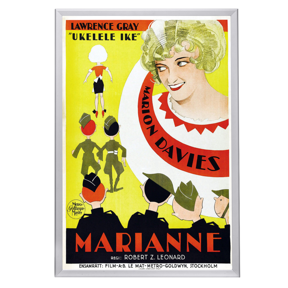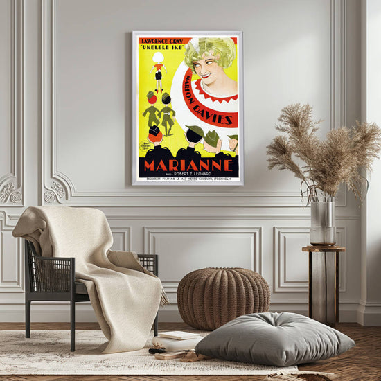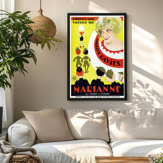 Encapsulate the roaring '20s with the framed Marianne (1929) movie poster, a testament to the golden age of silent film and the enduring allure of cinema. This exquisite reproduction celebrates the historical significance of MGM's first all-talking picture featuring a solo Marion Davies, capturing her radiant performance that won over audiences and critics alike. Own a piece of Hollywood's illustrious past with this high-quality reprint, elegantly showcased in the distinguished Snapezo Professional Movie Poster Frame.