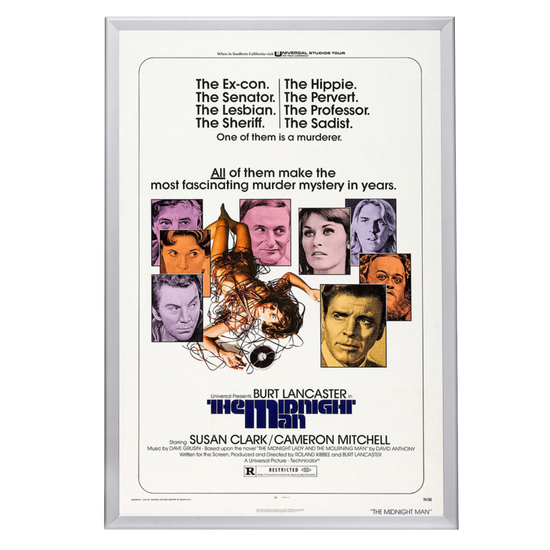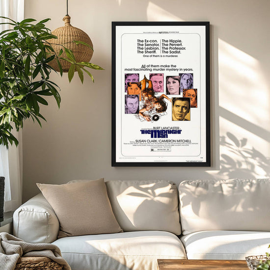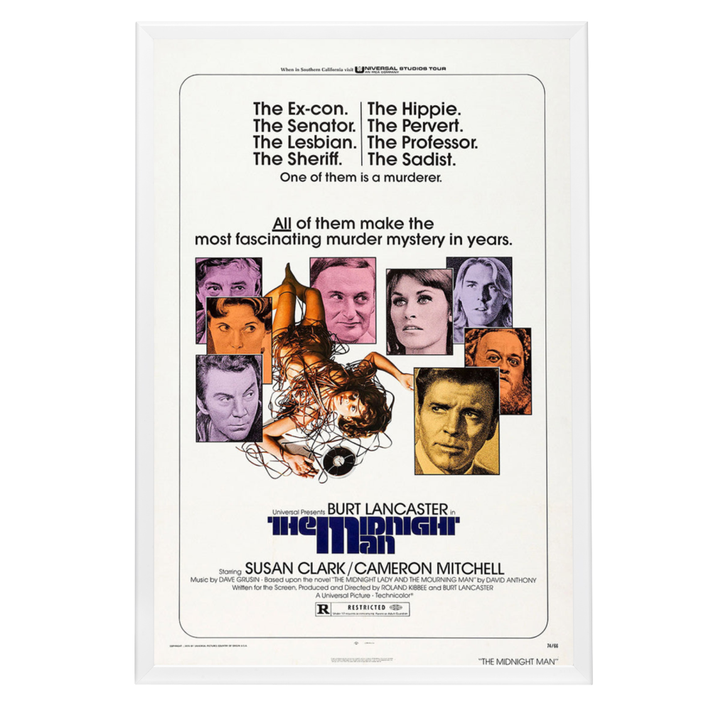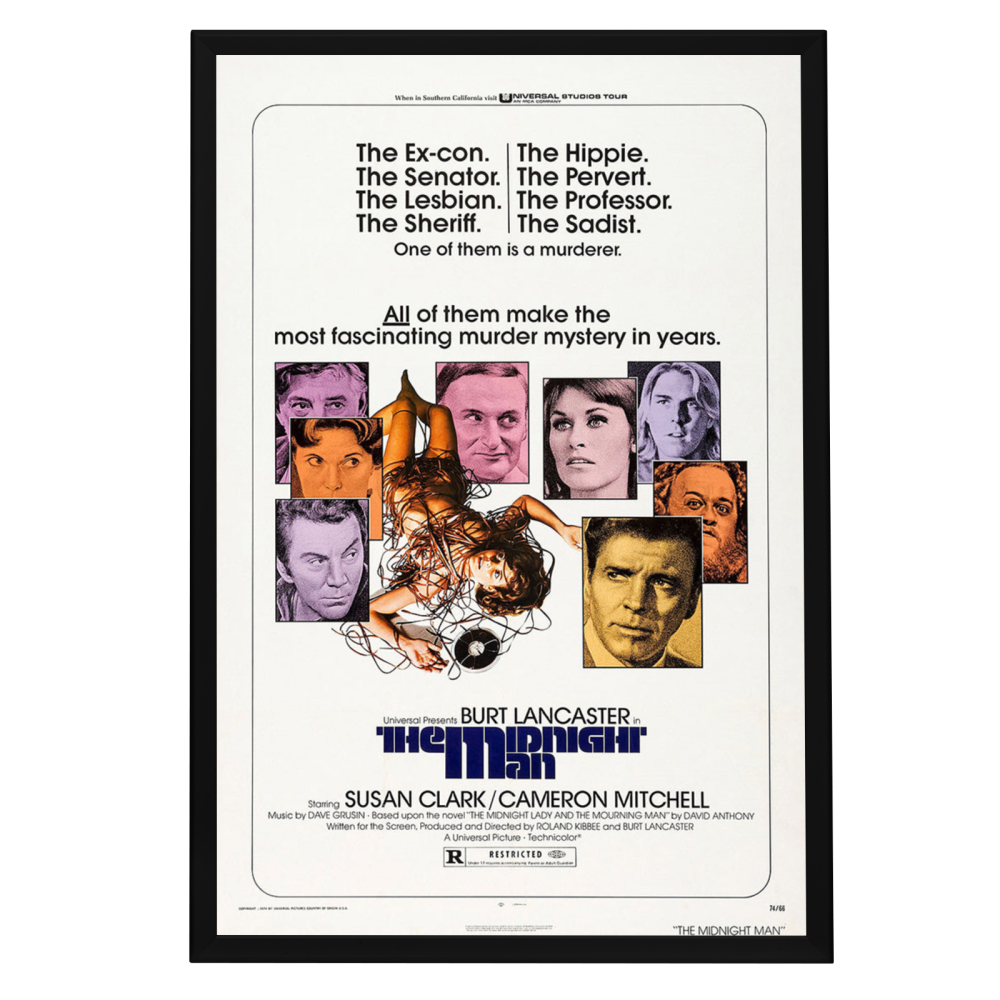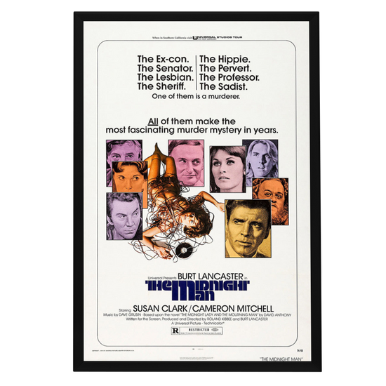 Embrace the vintage charm and intrigue with our framed reproduction of the "Midnight Man" movie poster. Released in 1974, "Midnight Man" is a crime-thriller that has carved its niche among classic film aficionados. Starring the indomitable Burt Lancaster, who also co-directed the film with Roland Kibbee, "Midnight Man" is a tale of an ex-con turned night watchman who finds himself entangled in a university murder mystery. The poster of this gripping narrative has become an emblem of the 70s cinema, capturing the essence of the gritty and suspenseful atmosphere that the film so brilliantly portrayed.
