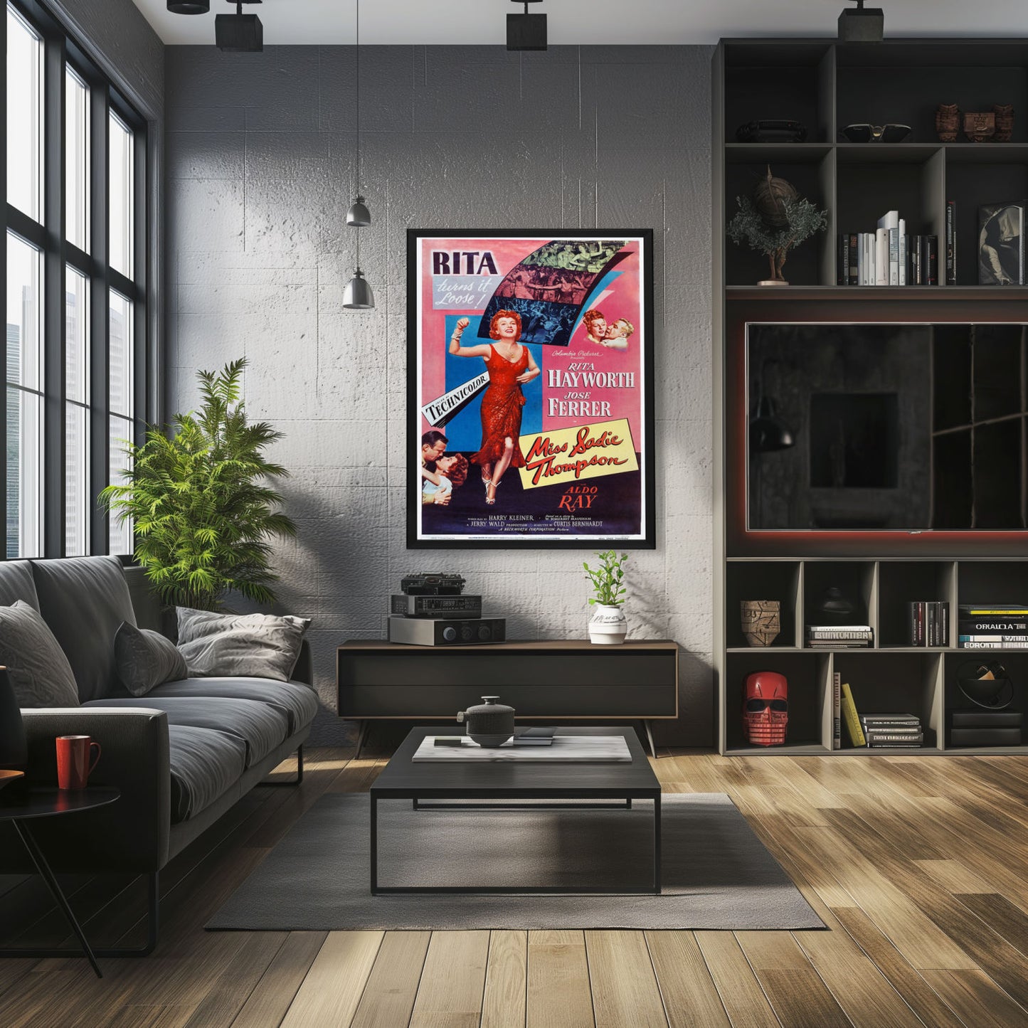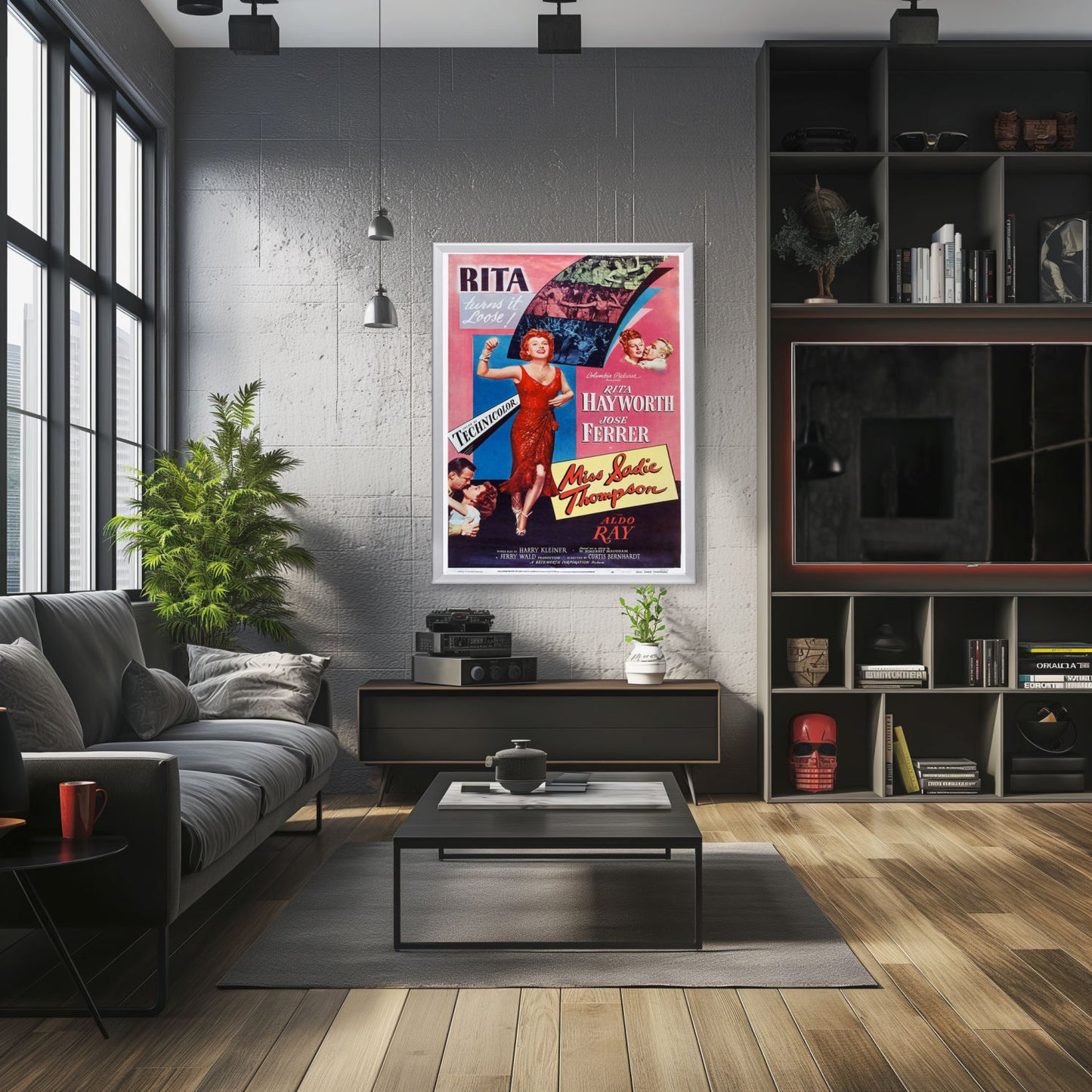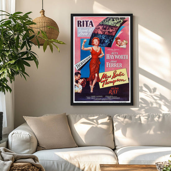 Experience the allure of Rita Hayworth with the framed Miss Sadie Thompson poster in a high-quality Snapezo frame. Classic art meets modern display.