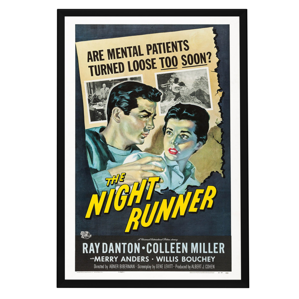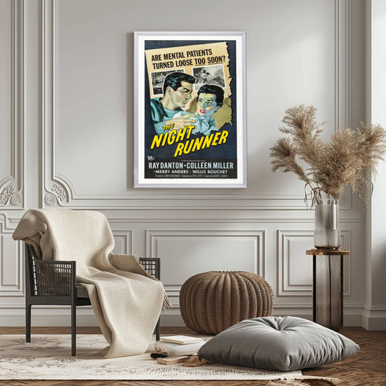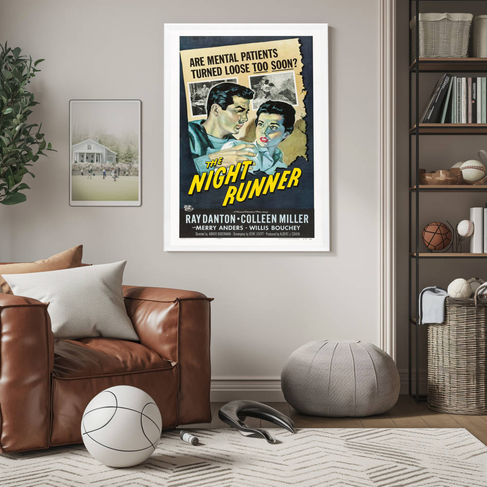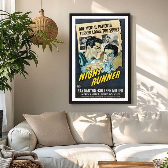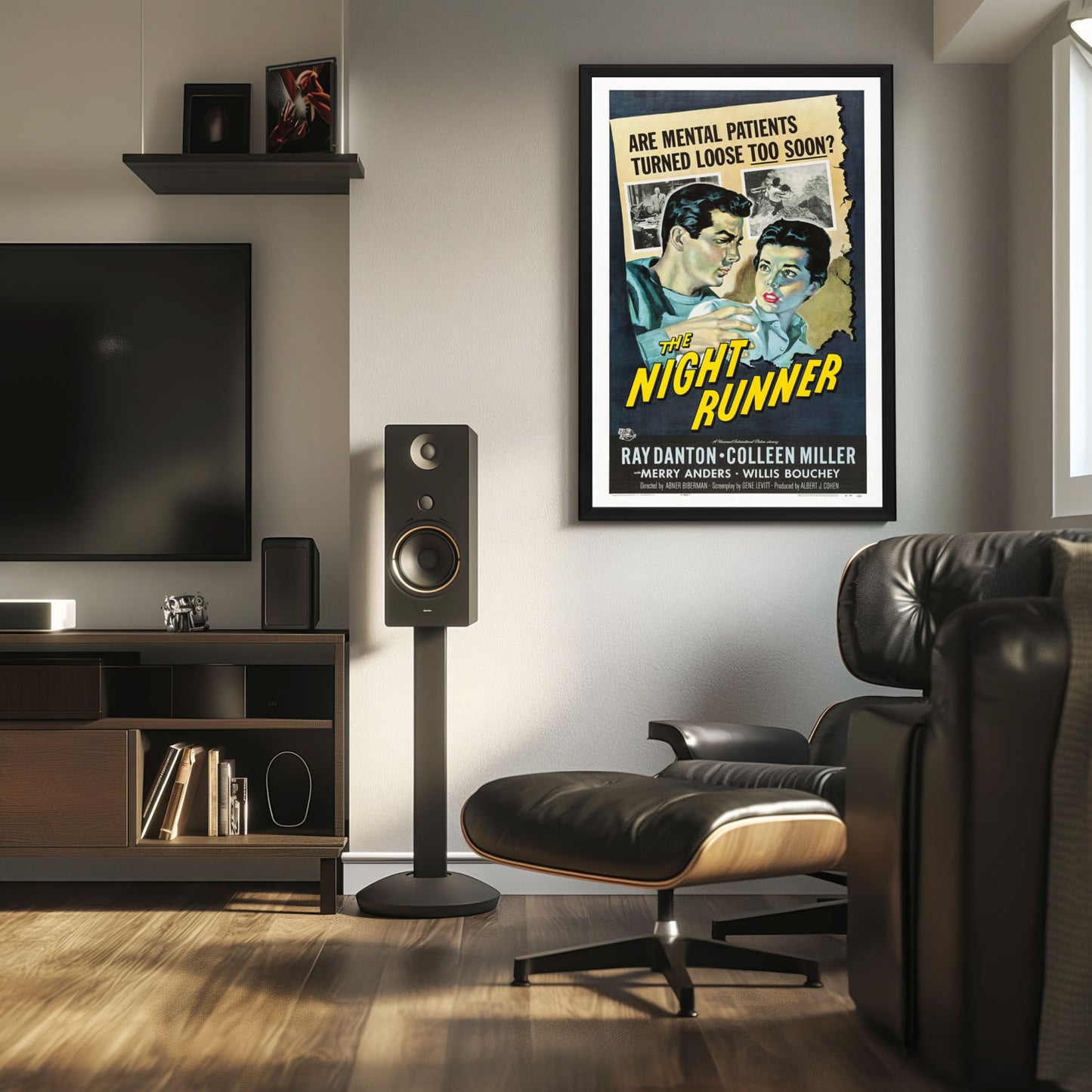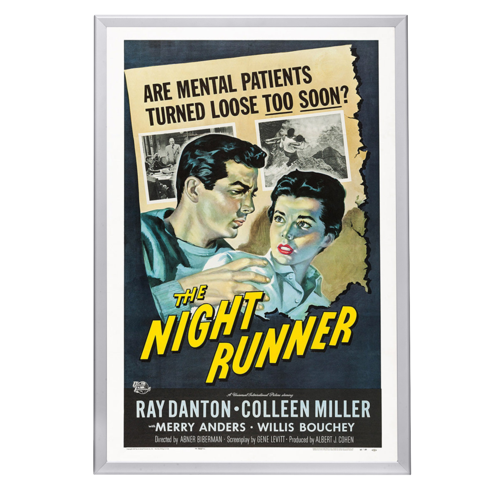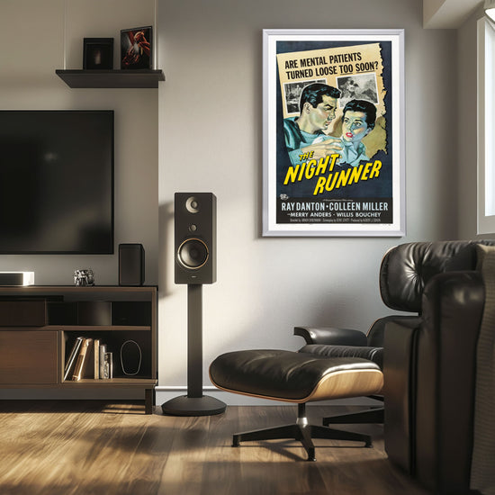 Experience cinematic nostalgia with our framed "Night Runner" (1957) movie poster in a Snapezo frame, featuring high-quality reprint and antiglare cover.