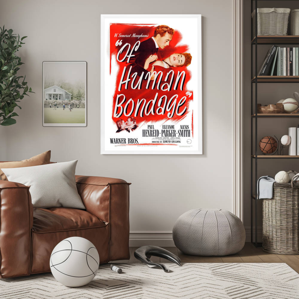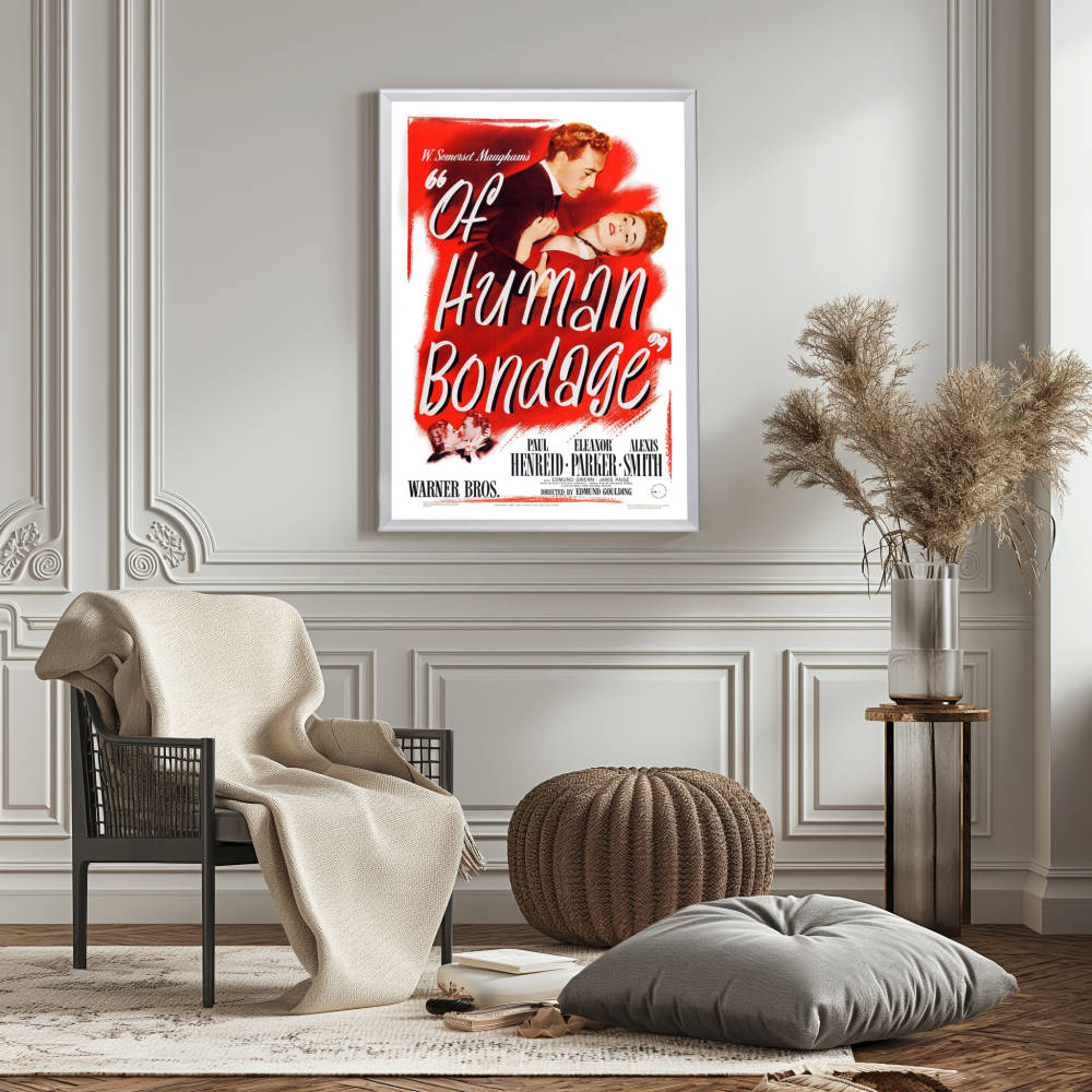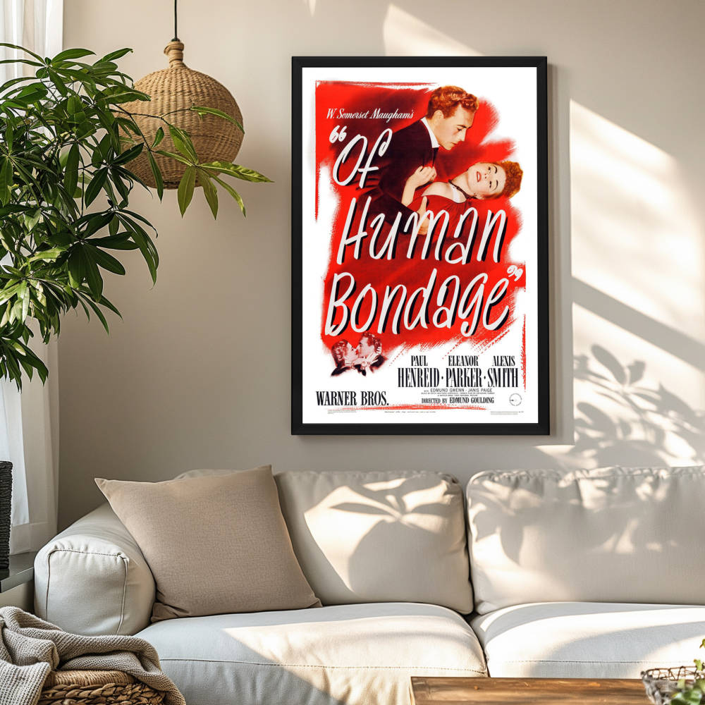 Own a piece of cinematic history with a framed "Of Human Bondage" (1946) poster in a Snapezo antiglare frame, enriching your collection with vintage Hollywood elegance.