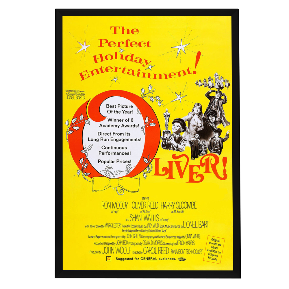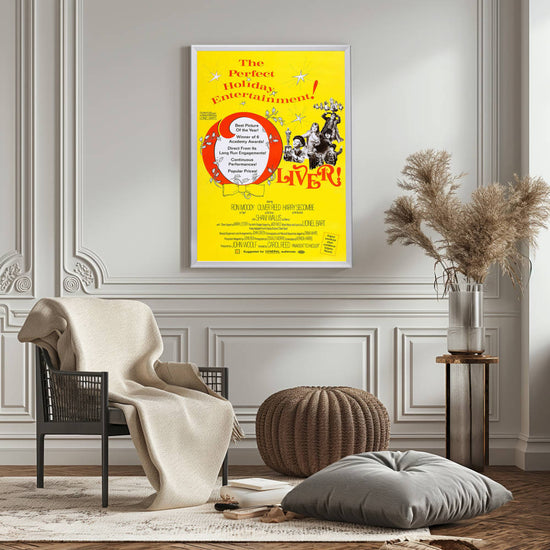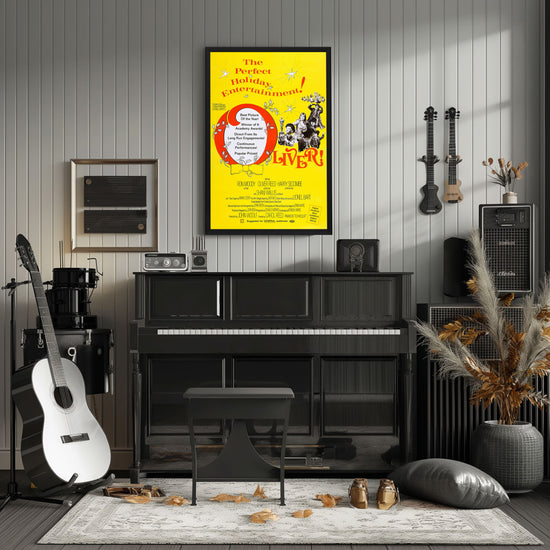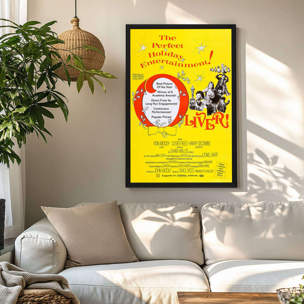 Capture the essence of musical cinema history with the framed "Oliver!" movie poster. This 1968 classic, directed by Carol Reed, not only won six Academy Awards, including Best Picture but also charmed audiences with its unforgettable adaptation of Charles Dickens' "Oliver Twist. " The poster itself is a piece of art, echoing the vibrant energy and heartfelt emotions of the film. It showcases iconic imagery that is immediately recognizable – the joyful face of Mark Lester as Oliver, surrounded by the colorful cast that brings the streets of Victorian London to life.