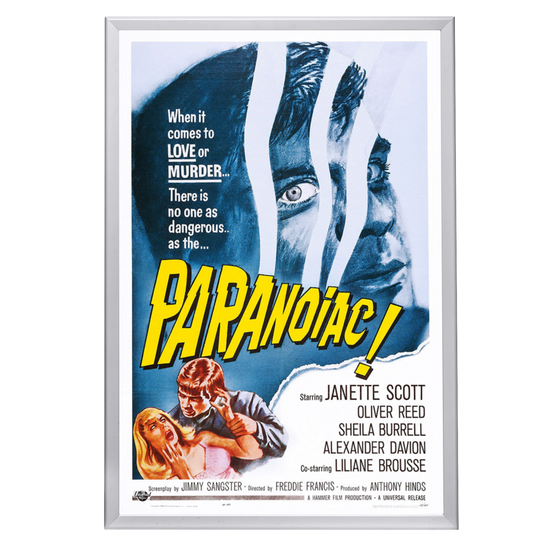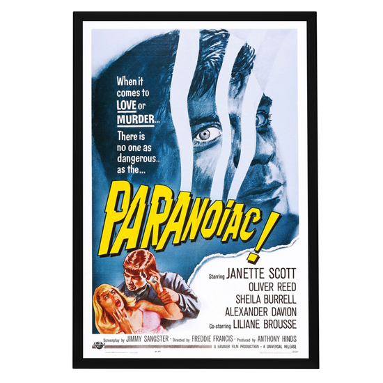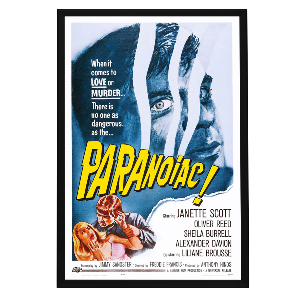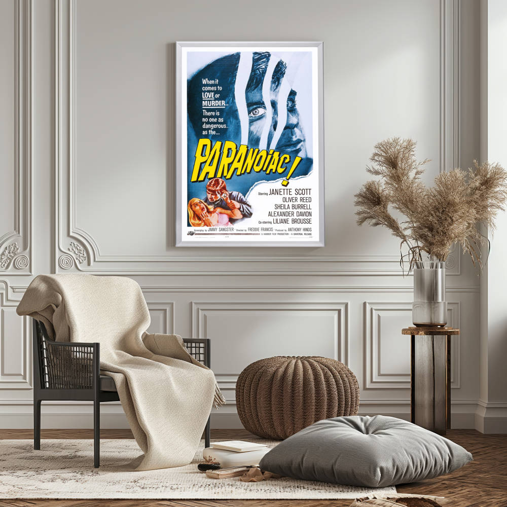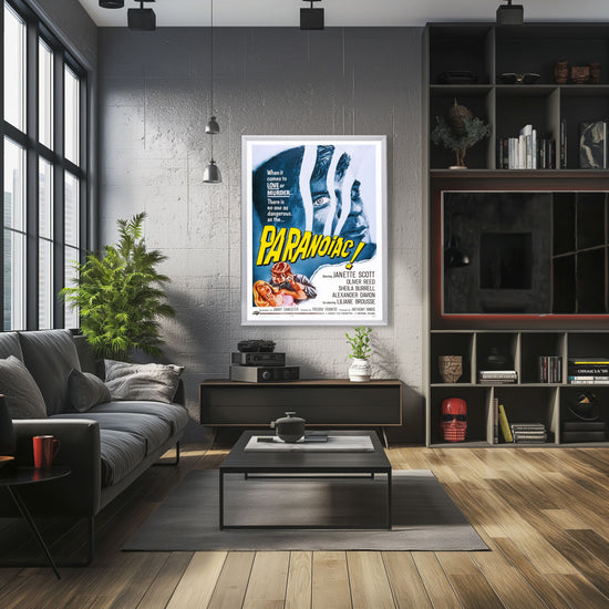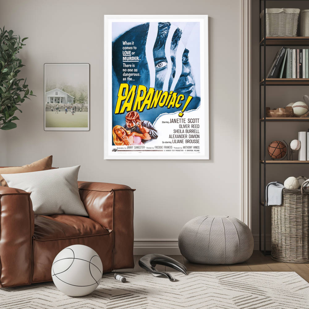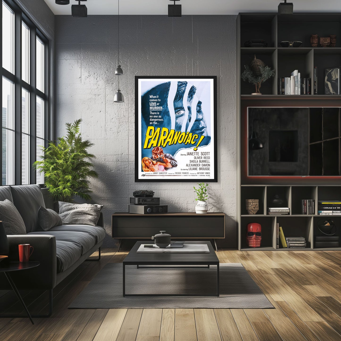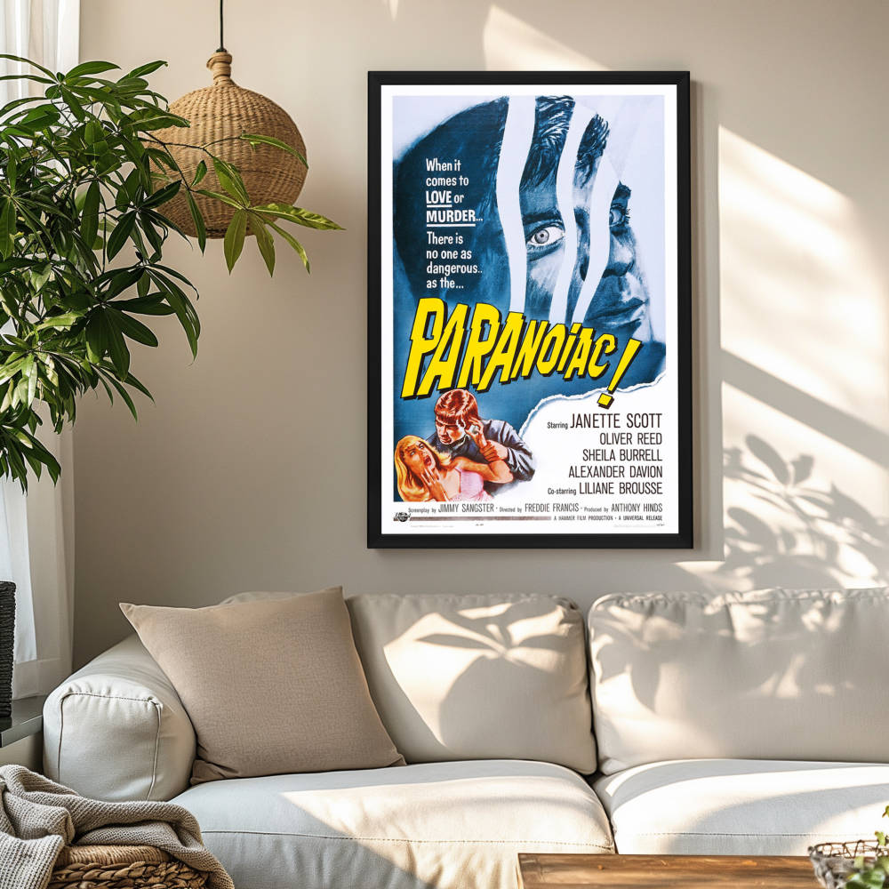 This high-quality reprint is a faithful representation of the original poster, offering fans and collectors a piece of cinematic history. It's not a mere digital print but a superior reproduction that honors the film's legacy. The intense, brooding visuals of the "Paranoiac" poster are perfectly reproduced, with deep, rich colors and sharp details that evoke the eerie grandeur of the 1960s thriller, ensuring it captivates all who view it.