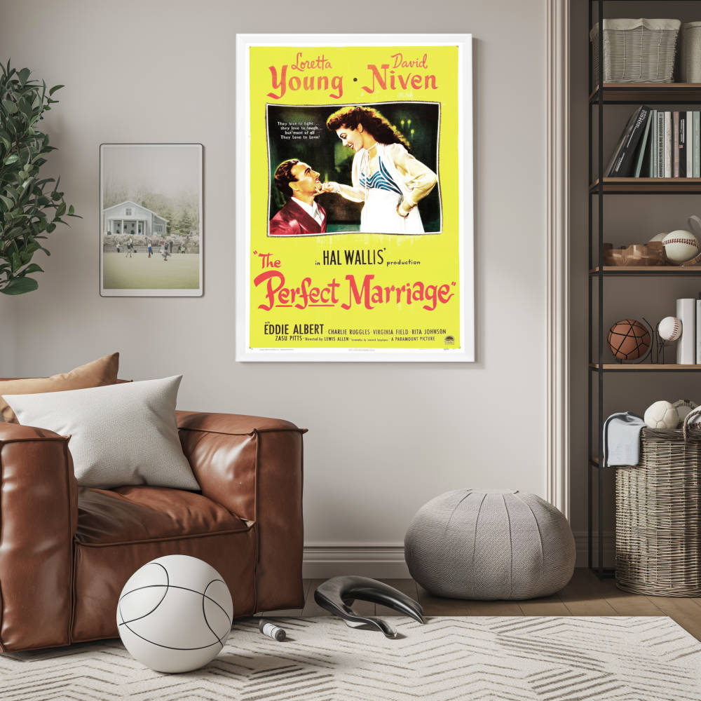Own a piece of the Golden Age of Hollywood with the framed "Perfect Marriage" (1947) movie poster in a Snapezo clear, antiglare frame. Experience timeless romance and quality.