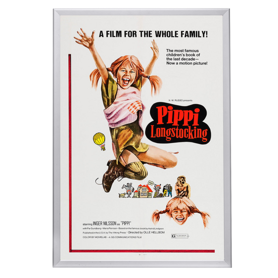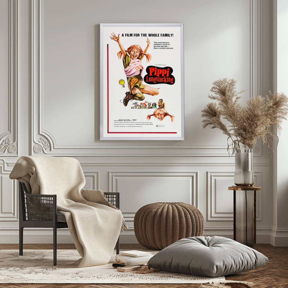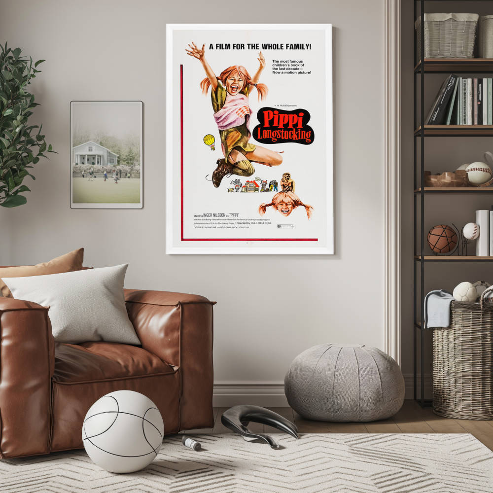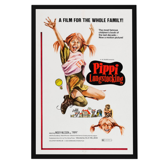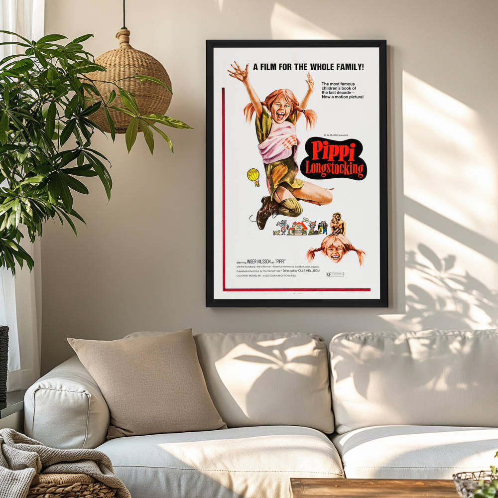 Step into the whimsical world of Pippi Longstocking with this exquisite framed poster from the 1969 film that captured hearts all around the globe. This iconic poster, featuring the unforgettable Pippi played by Inger Nilsson, is well known for its vibrant depiction of the mischievous and superhumanly strong girl who embarks on delightful adventures. The poster is not only a colorful piece of nostalgia but also a testament to the film's enduring appeal and critical acclaim in children's cinema.