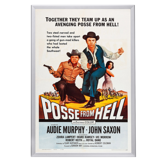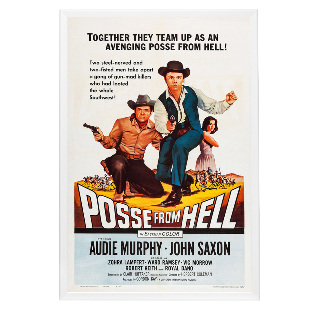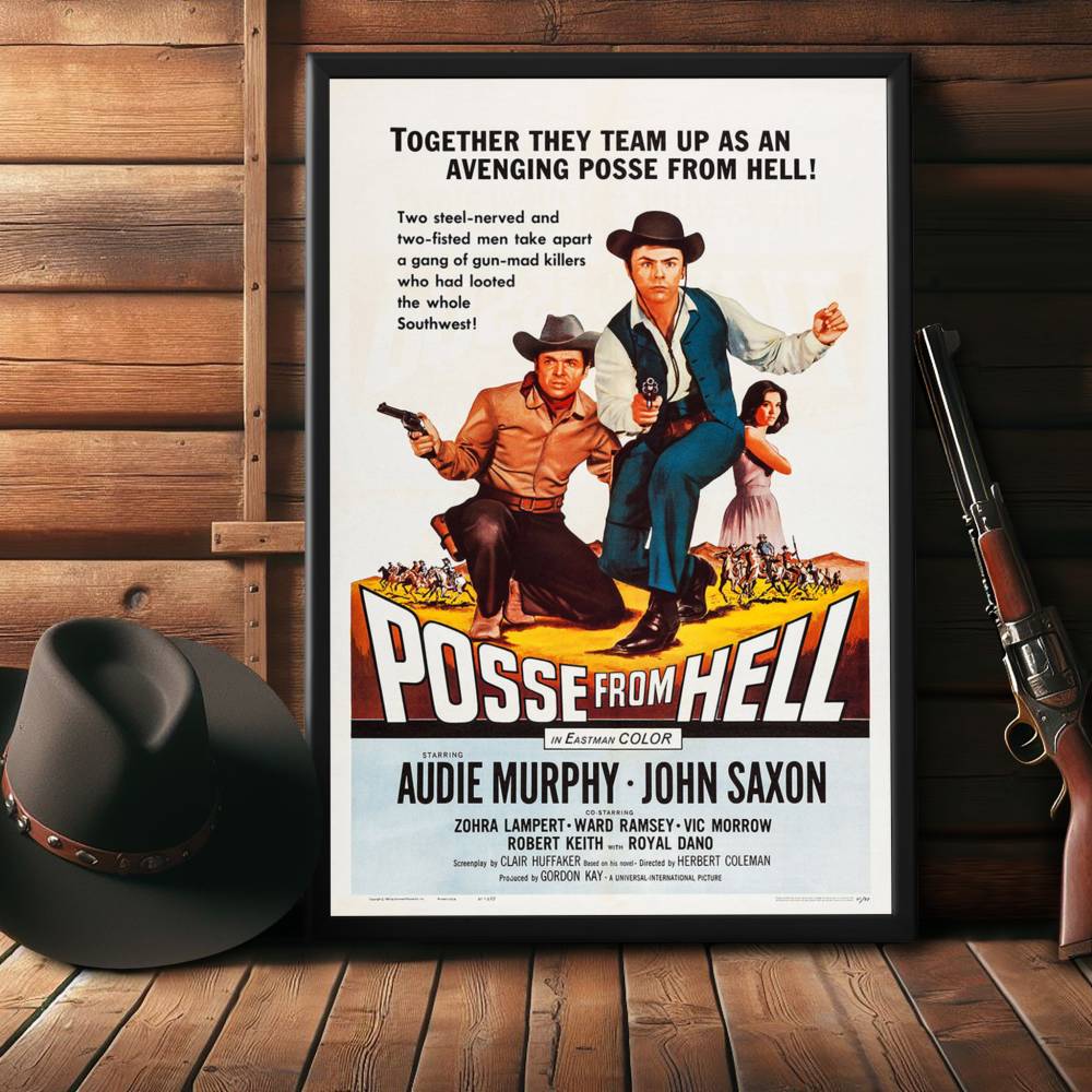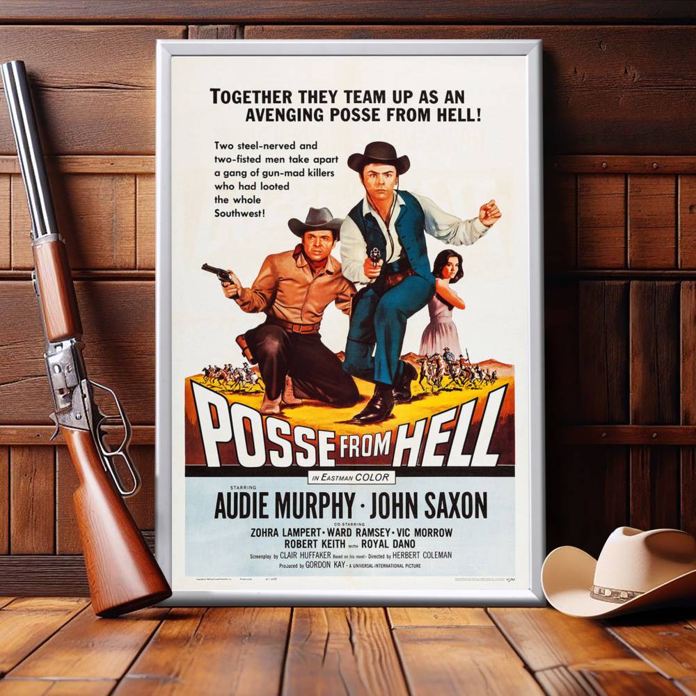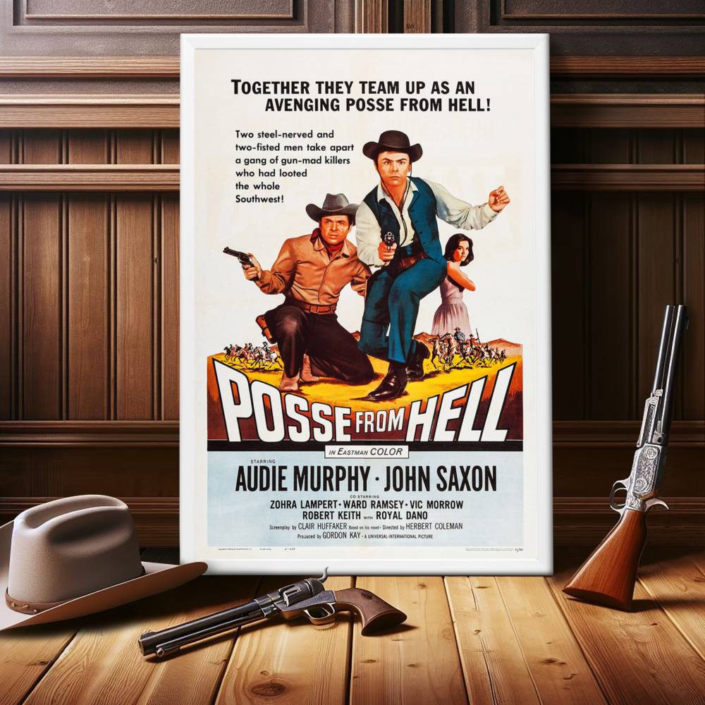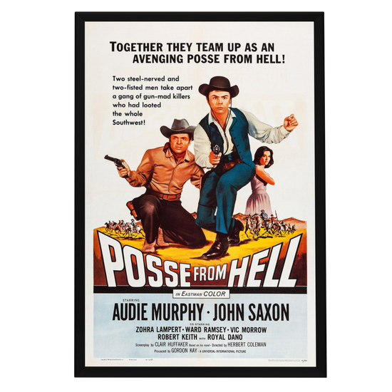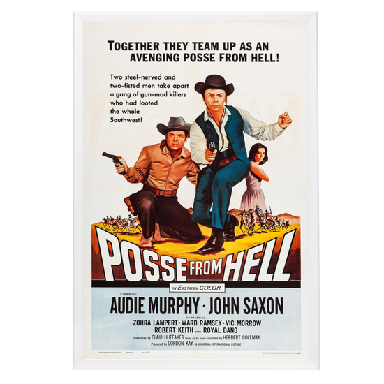 Immerse yourself in the gritty world of the Old West with this framed movie poster of "Posse From Hell" (1961). This classic Western, featuring the legendary Audie Murphy and John Saxon, resonated with audiences for its thrilling narrative and has since become a treasured piece of cinema history. Amid the dusty trails and gun-slinging outlaws, the film's poster stands as an emblem of the genre's iconic aesthetic.