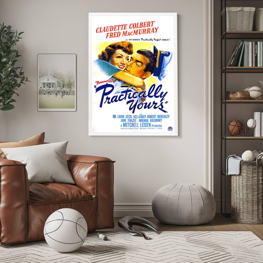 Combining the allure of classic moviemaking with contemporary display technology, the framed "Practically Yours" movie poster is a testament to cinema's enduring legacy and a must-have for aficionados and decorators alike seeking a piece of film history with aesthetic appeal.