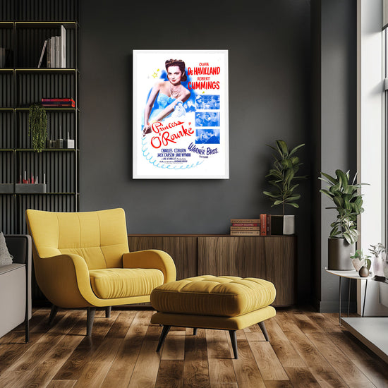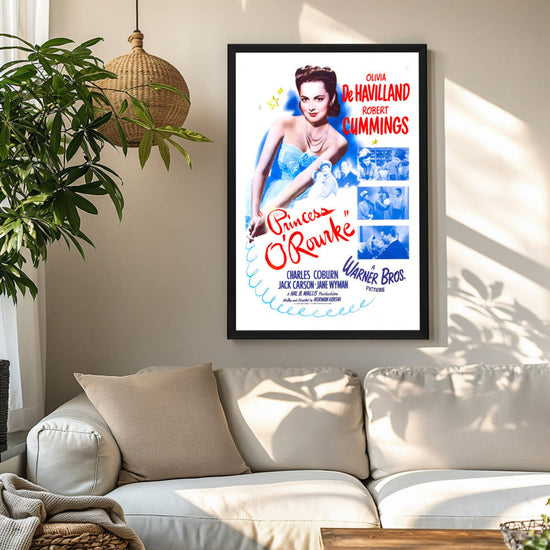 Elevate your home theater or vintage collection with the iconic framed movie poster of "Princess O'Rourke" (1943). This masterpiece of classical cinema, starring the illustrious Olivia de Havilland and the charming Robert Cummings, encapsulates the golden age of Hollywood romance and comedy. The film, directed by Norman Krasna, won the Academy Award for Best Original Screenplay, and its poster has become a coveted piece for collectors and film enthusiasts alike.
