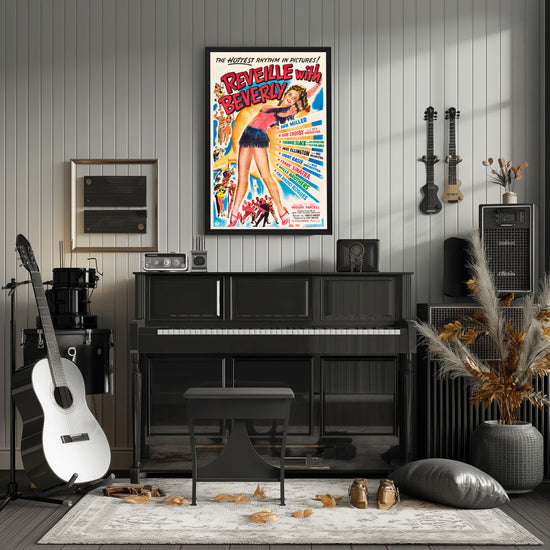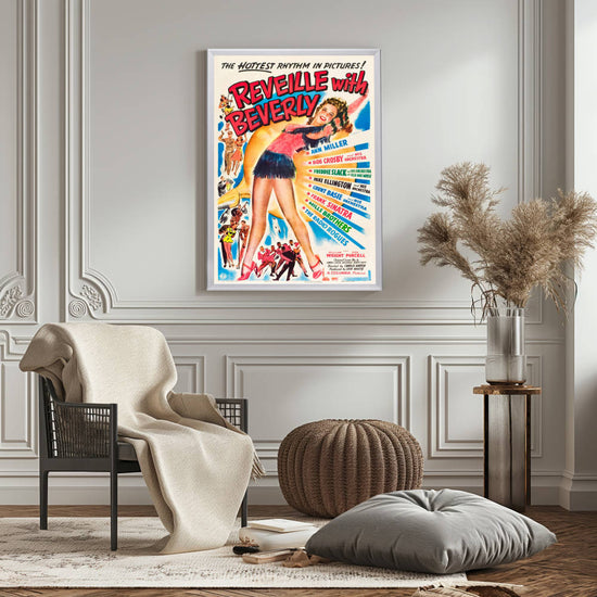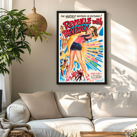 Own a piece of 1943 Hollywood with the iconic "Reveille With Beverly" framed poster. High-quality reprint in a Snapezo antiglare frame—timeless cinema elegance.