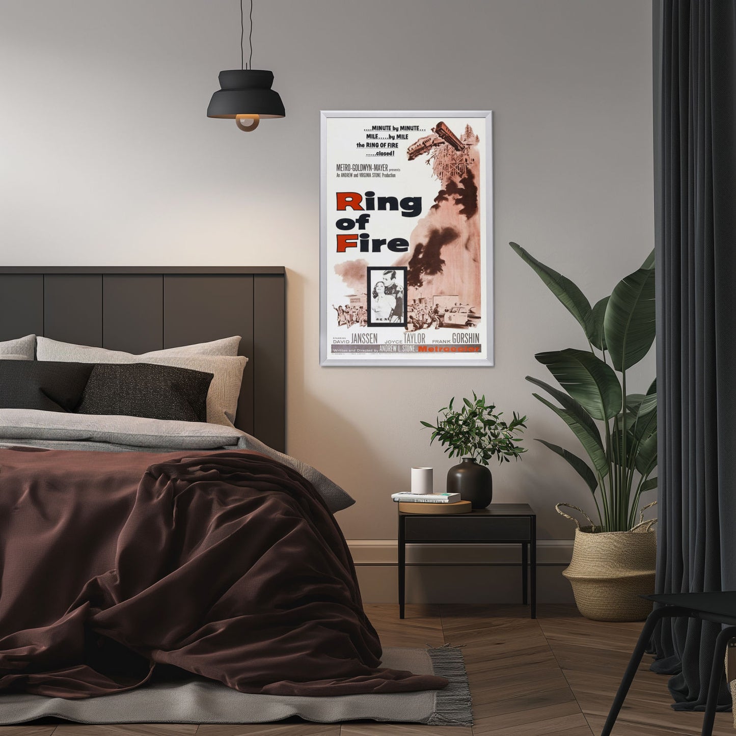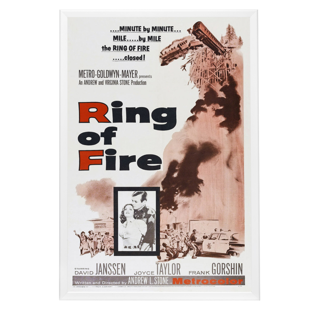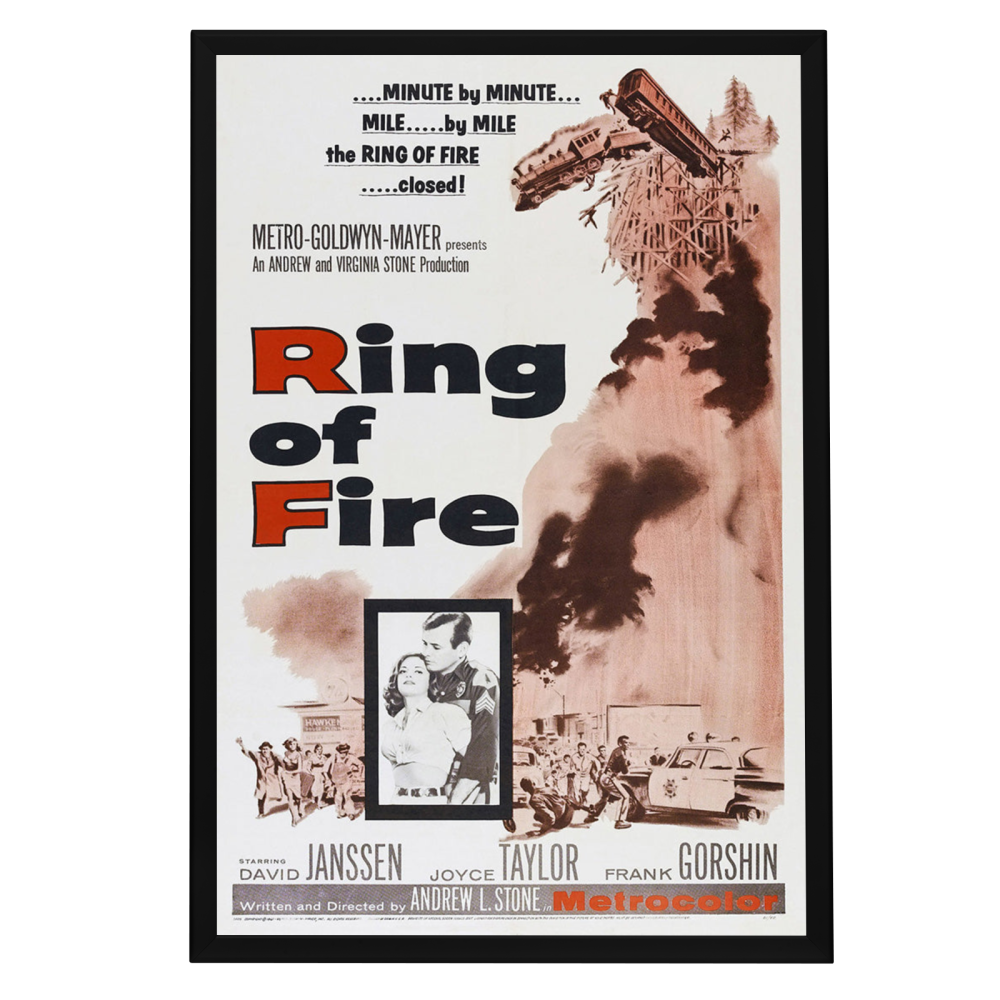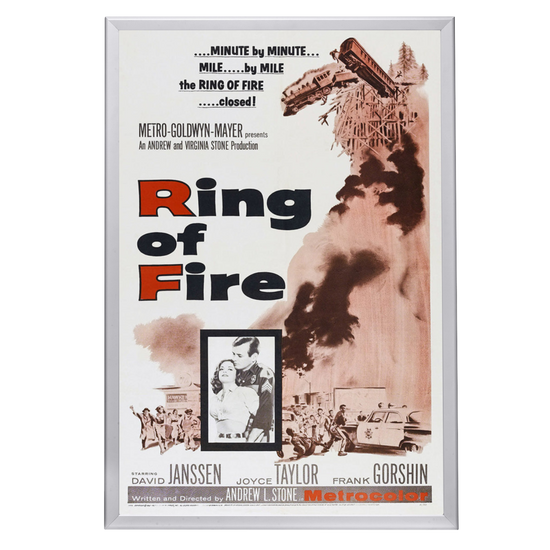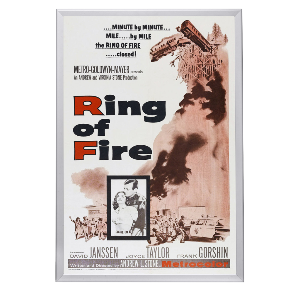 Own a piece of thriller cinema history with a framed "Ring of Fire" (1961) poster. High-quality reprint in a Snapezo frame, perfect for collectors.
