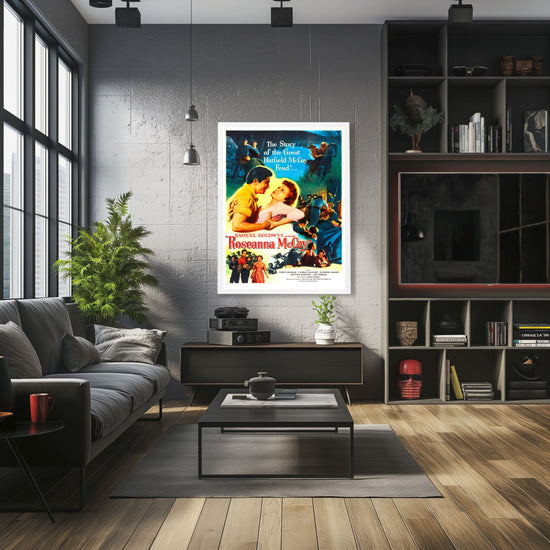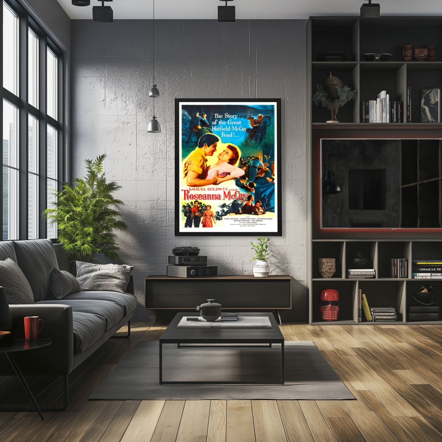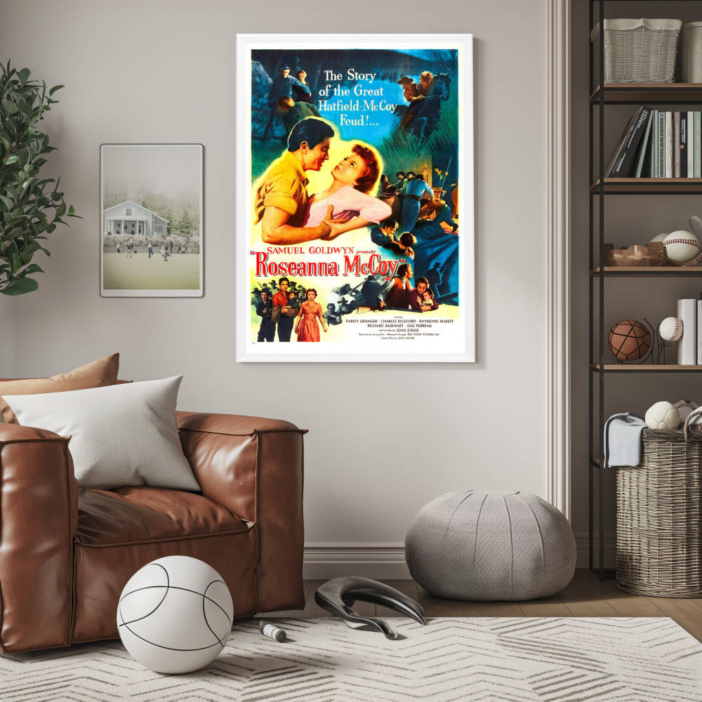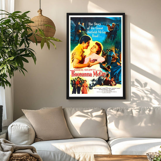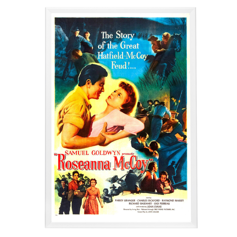 Immerse yourself in the romantic tragedy of the 1949 classic film, "Roseanna McCoy," with this exquisite framed movie poster. The tale of forbidden love set against the backdrop of the infamous Hatfield-McCoy feud has captivated audiences for decades, and now you can bring a piece of that history into your own space. This high-quality reprint captures the essence of the original artwork, showcasing the intense emotions and rustic charm that made "Roseanna McCoy" a poignant narrative of Americana.