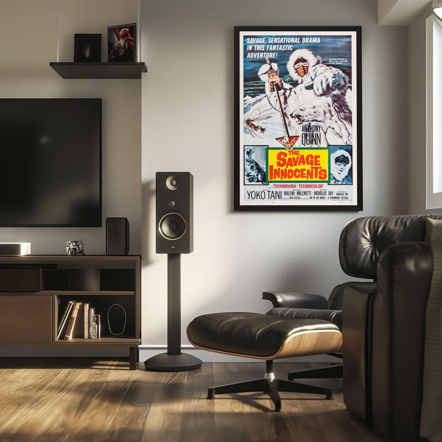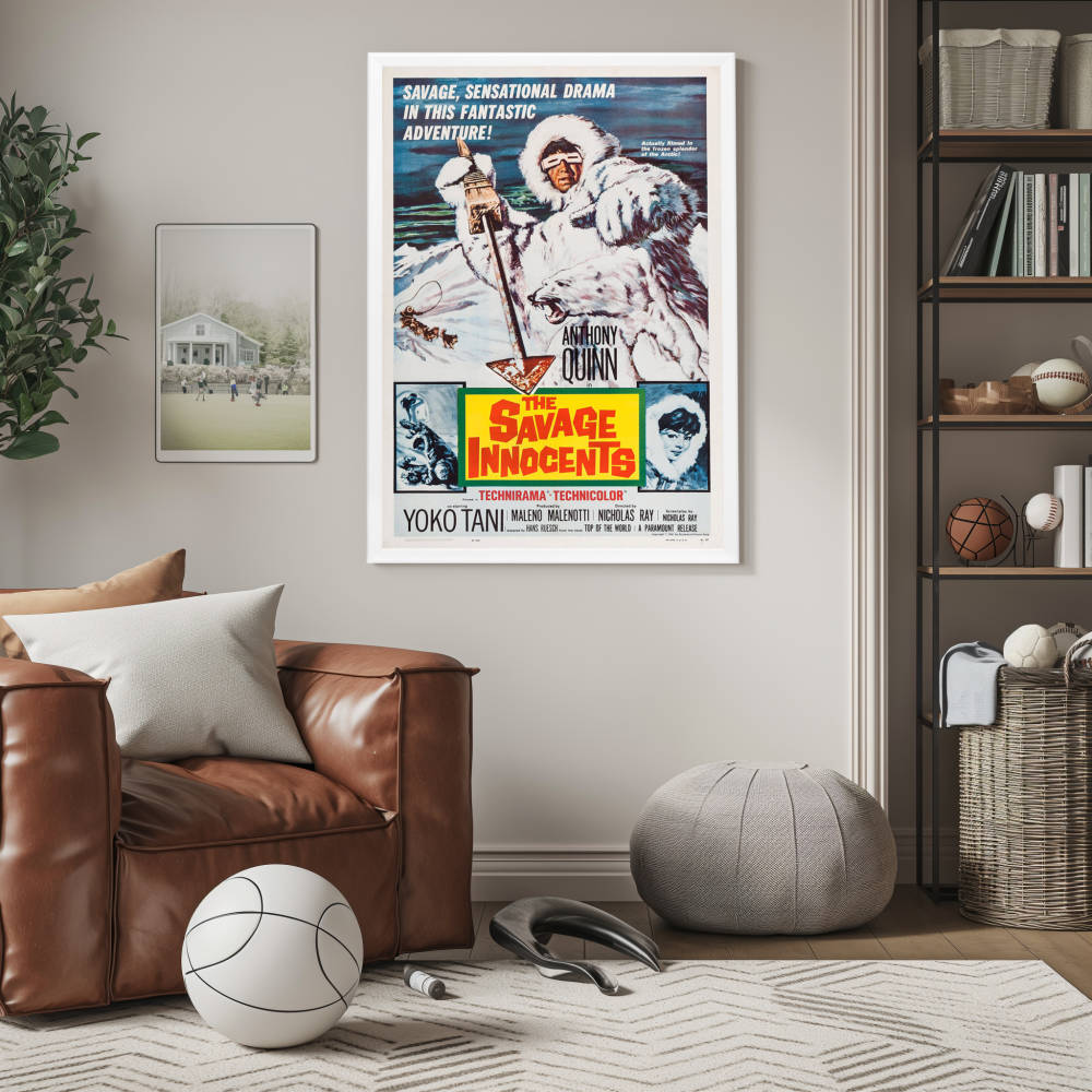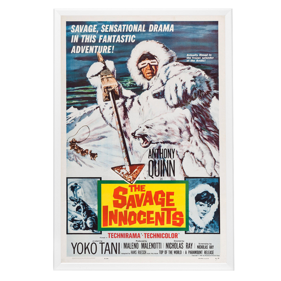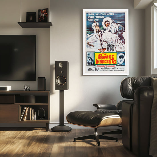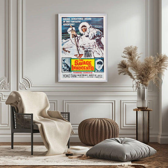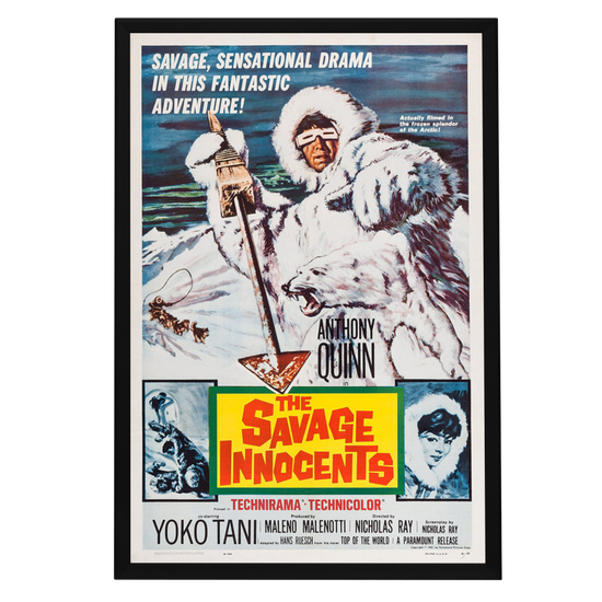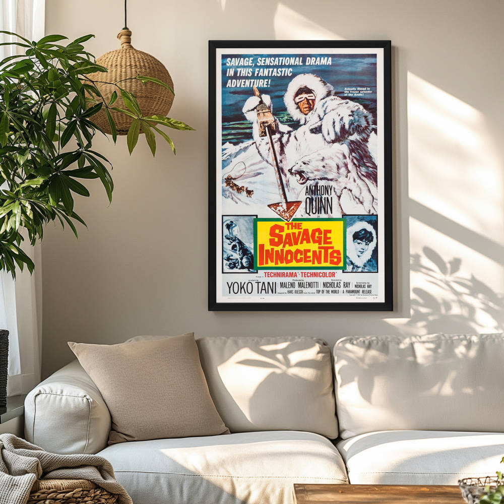 Step into a world of rugged landscapes and raw emotion with the "Savage Innocents (1960)" framed movie poster, a testament to the captivating power of classic cinema. Directed by the renowned Nicholas Ray, this film is hailed for its striking portrayal of Inuit life and the intense yet sensitive performance by Anthony Quinn as the protagonist, Inuk. This poster captures the essence of the film's visual and thematic depth, making it a sought-after piece among cinephiles and collectors alike.