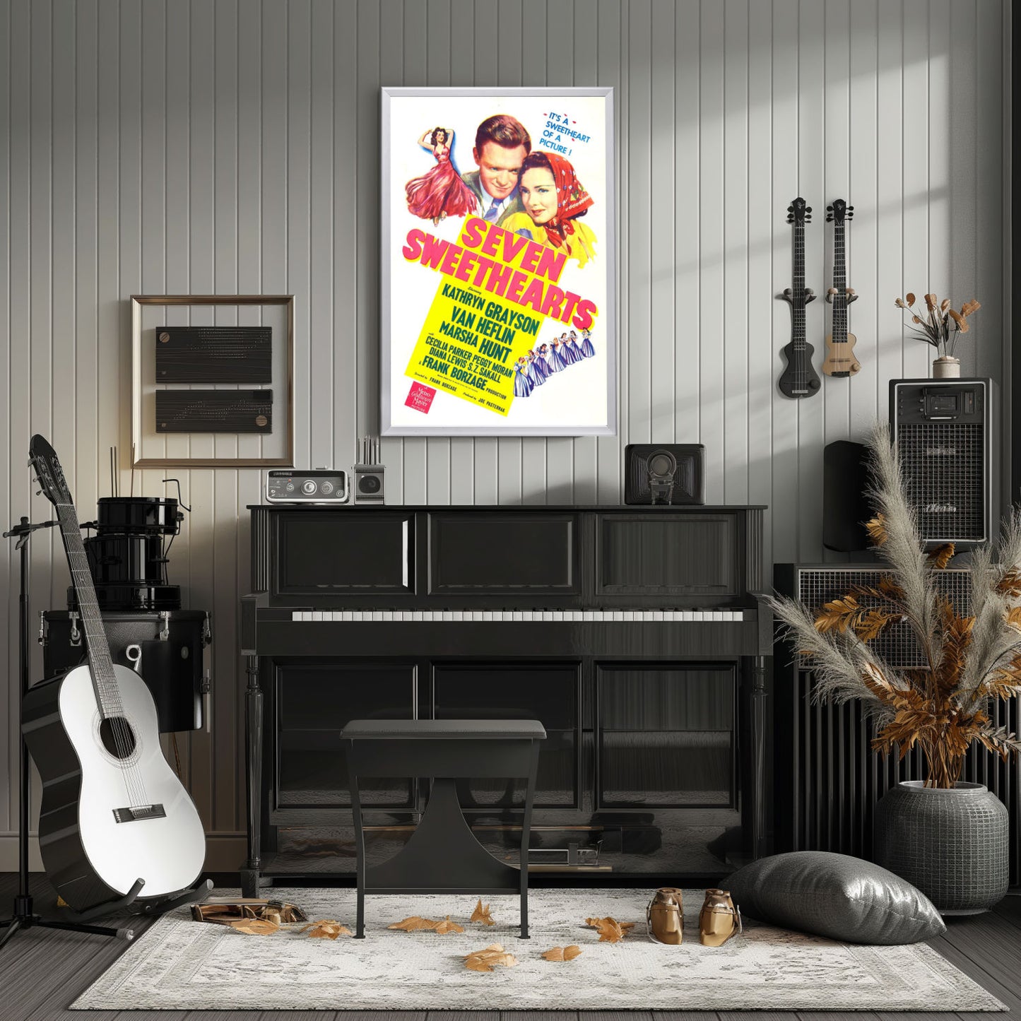 Own a piece of 1942 Hollywood with the framed "Seven Sweethearts" poster in a Snapezo Professional frame. High-quality reprint with clear, anti-glare cover.