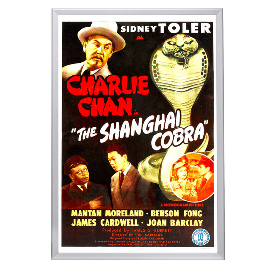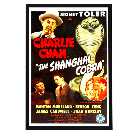 The mesmerizing design of the "Shanghai Cobra" poster emanates a classic charm that will dominate any room. The sharp contrasts, the iconic imagery of Charlie Chan himself, and the menacing presence of the cobra come together to create an unforgettable visual piece that pays homage to the film's noir roots.