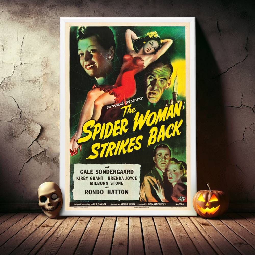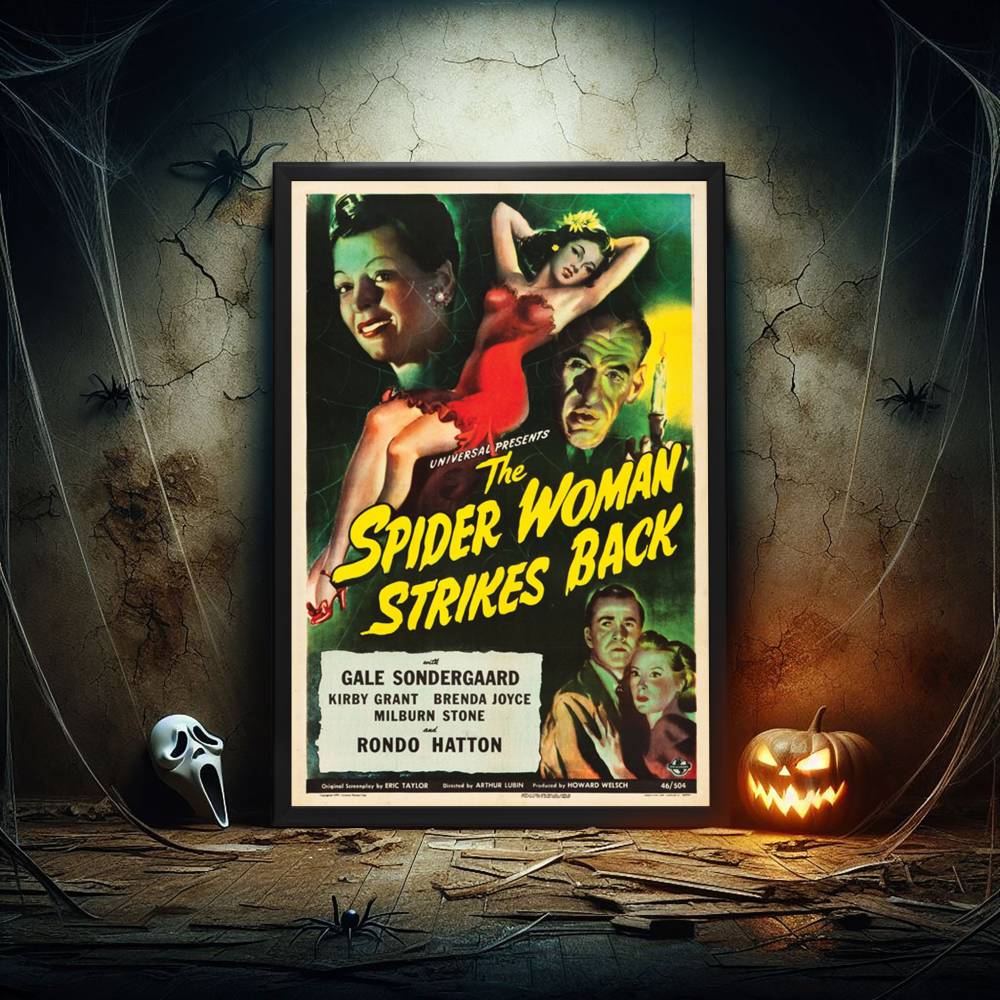 "Spider Woman Strikes Back" is a film that has enchanted film buffs for generations, with its gripping narrative and unique place in the Universal horror lineup. Its original posters are considered rare collector's items, sought after for their bold graphic design and nostalgic charm. This high-quality reprint captures the essence of the original artwork, exuding an aura of mystery and danger that is synonymous with the film's dramatic tension.