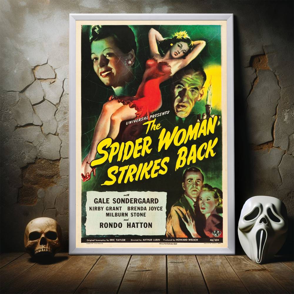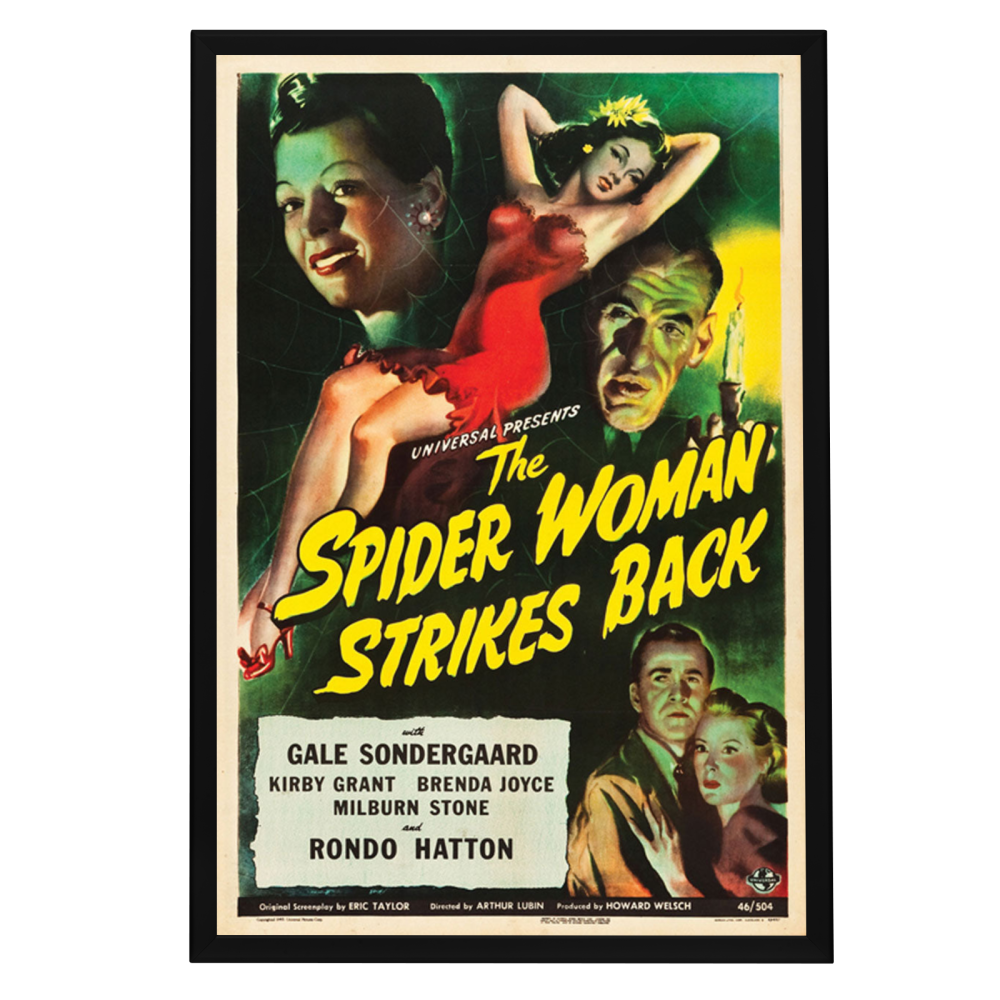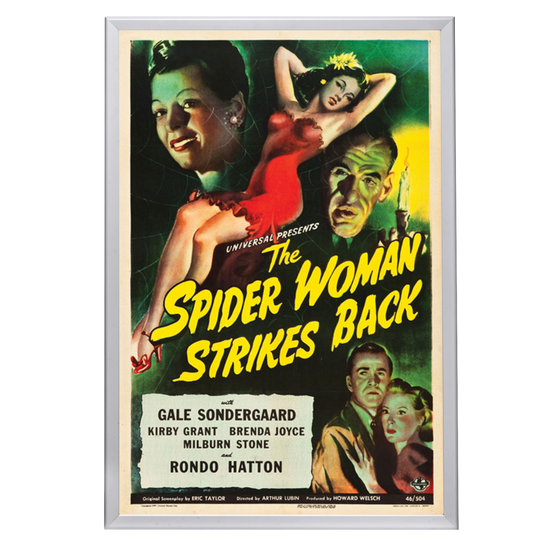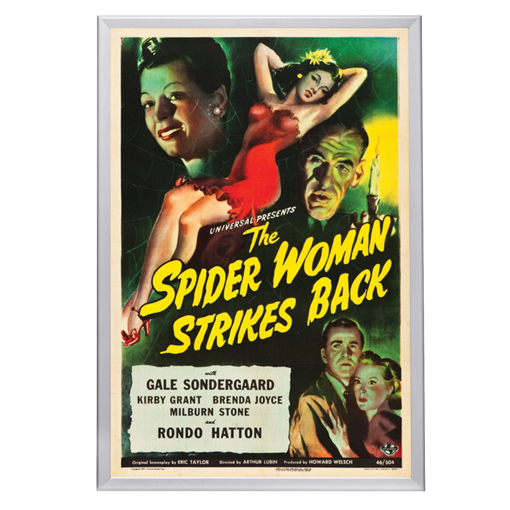 Own a piece of film noir history with the "Spider Woman Strikes Back" framed poster in a Snapezo frame. High-quality reprint with clear, anti-glare cover.