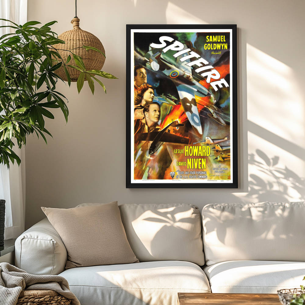 Bring home a piece of aviation and cinematic history with this framed replica of the iconic "Spitfire" (1942) movie poster. This exquisite reprint captures the spirit of the wartime classic that paid homage to the legendary British fighter aircraft and the skilled engineers who crafted it. The film, released at the height of the Second World War, not only boosted morale on the home front but also became a patriotic symbol, celebrating the bravery of the RAF pilots who defended the skies during the Battle of Britain.