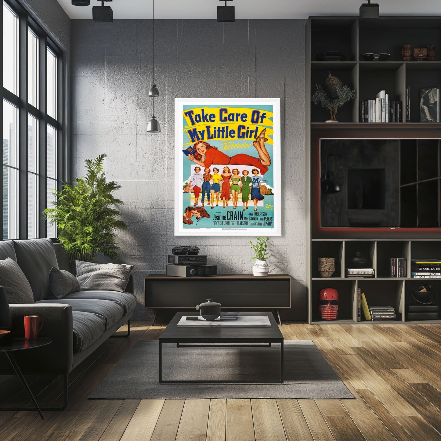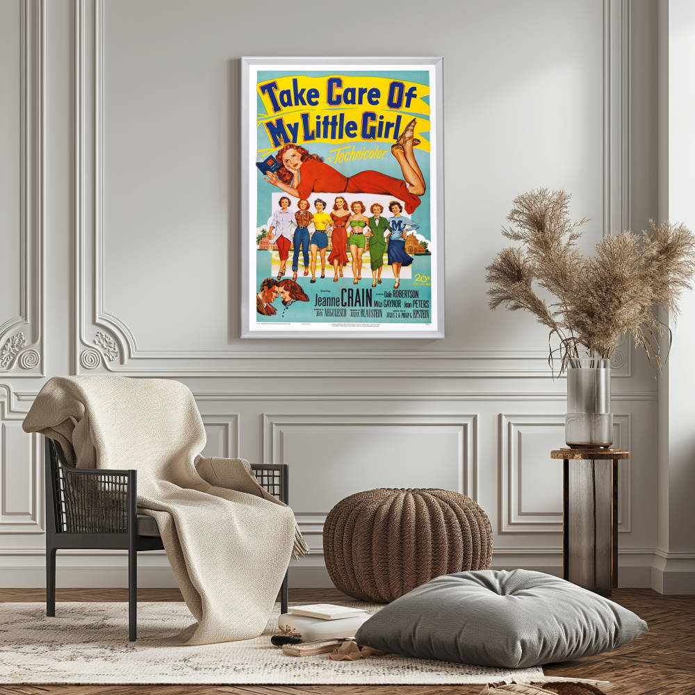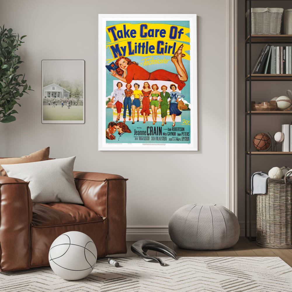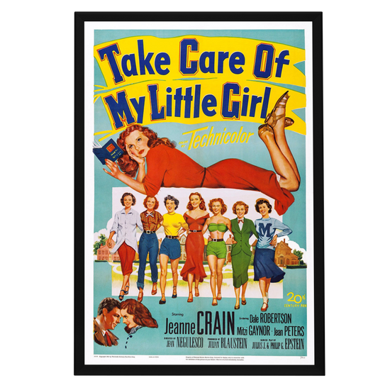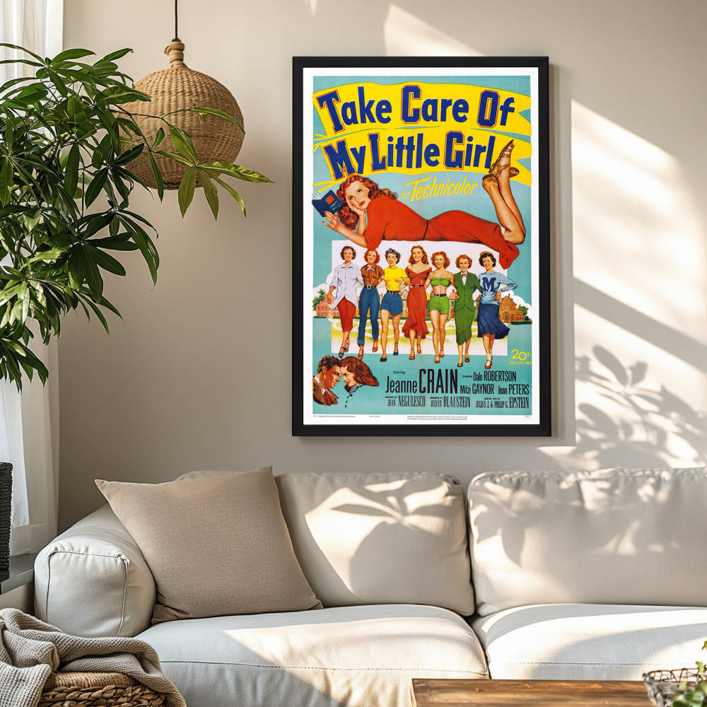 Own a piece of 1950s cinema with the framed "Take Care of My Little Girl" poster, in a Snapezo anti-glare frame. High-quality reprint for classic film enthusiasts.