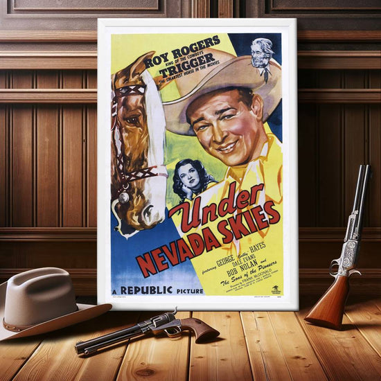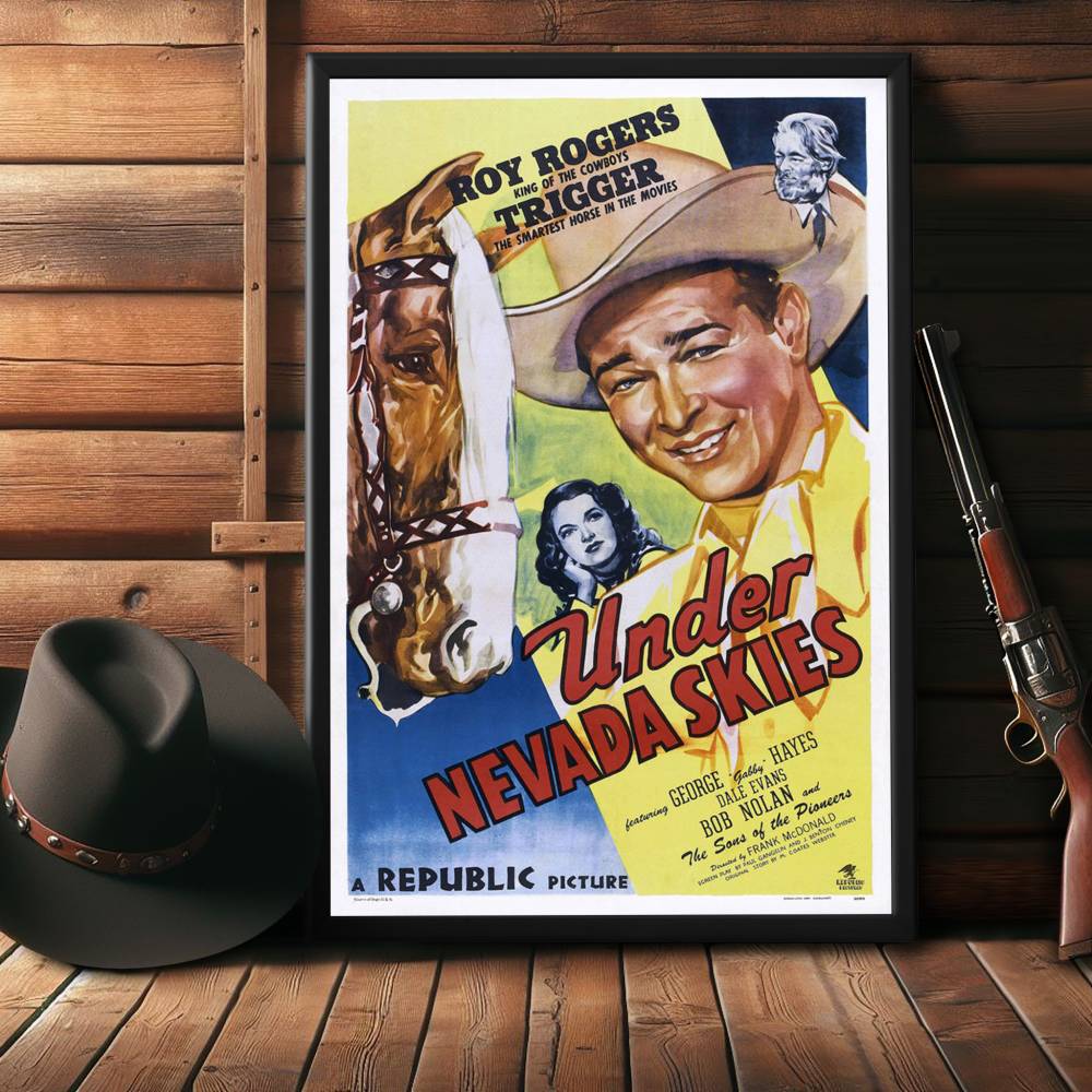 Own the nostalgia of the Wild West with a high-quality reprint of the 1946 "Under Nevada Skies" poster, framed elegantly in a Snapezo Professional Frame.
