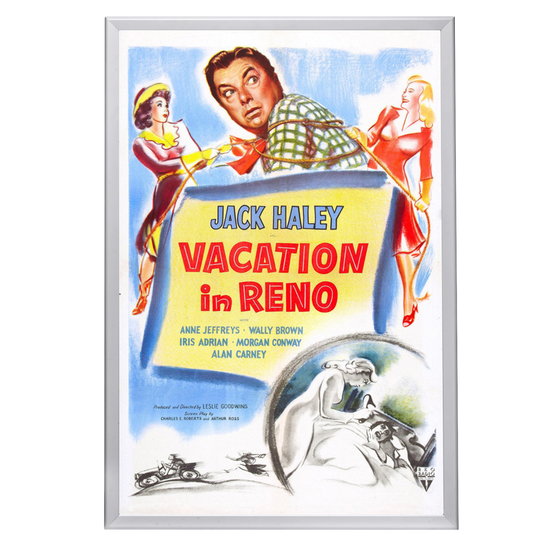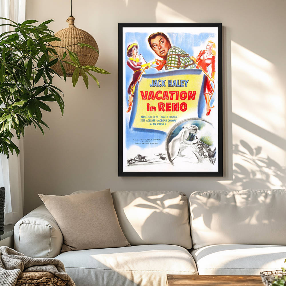 Relive the comedy of "Vacation In Reno" with a high-quality framed poster reproduction, encased in a Snapezo Professional Frame for a timeless cinematic display.