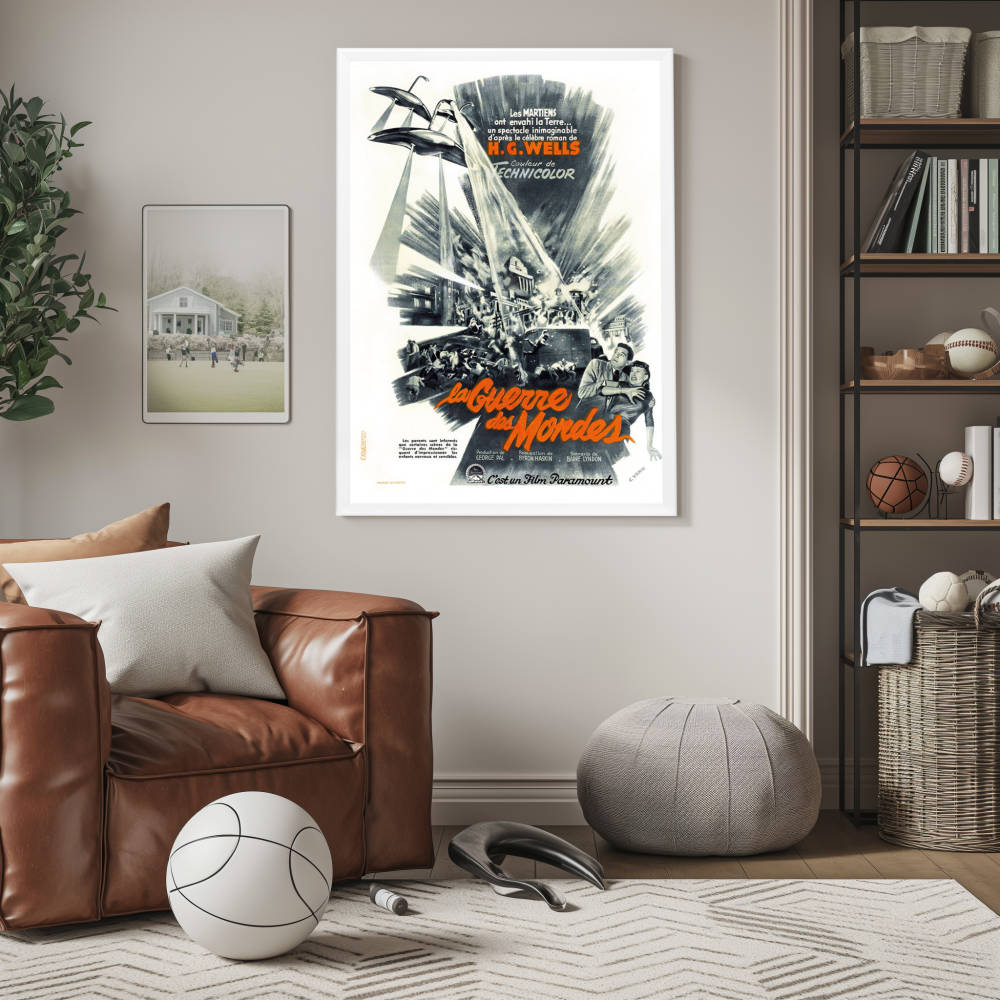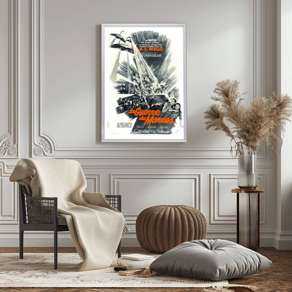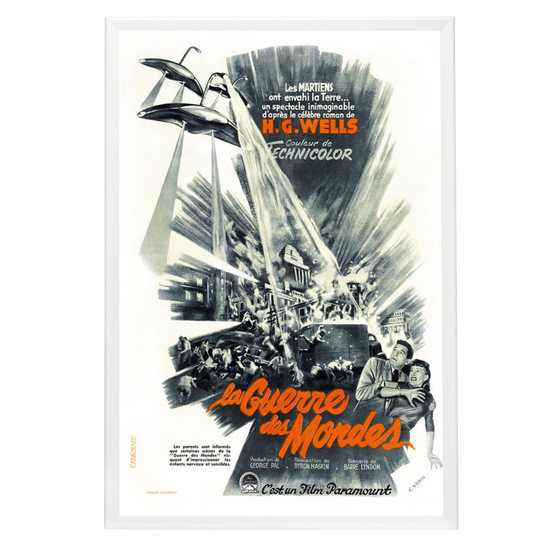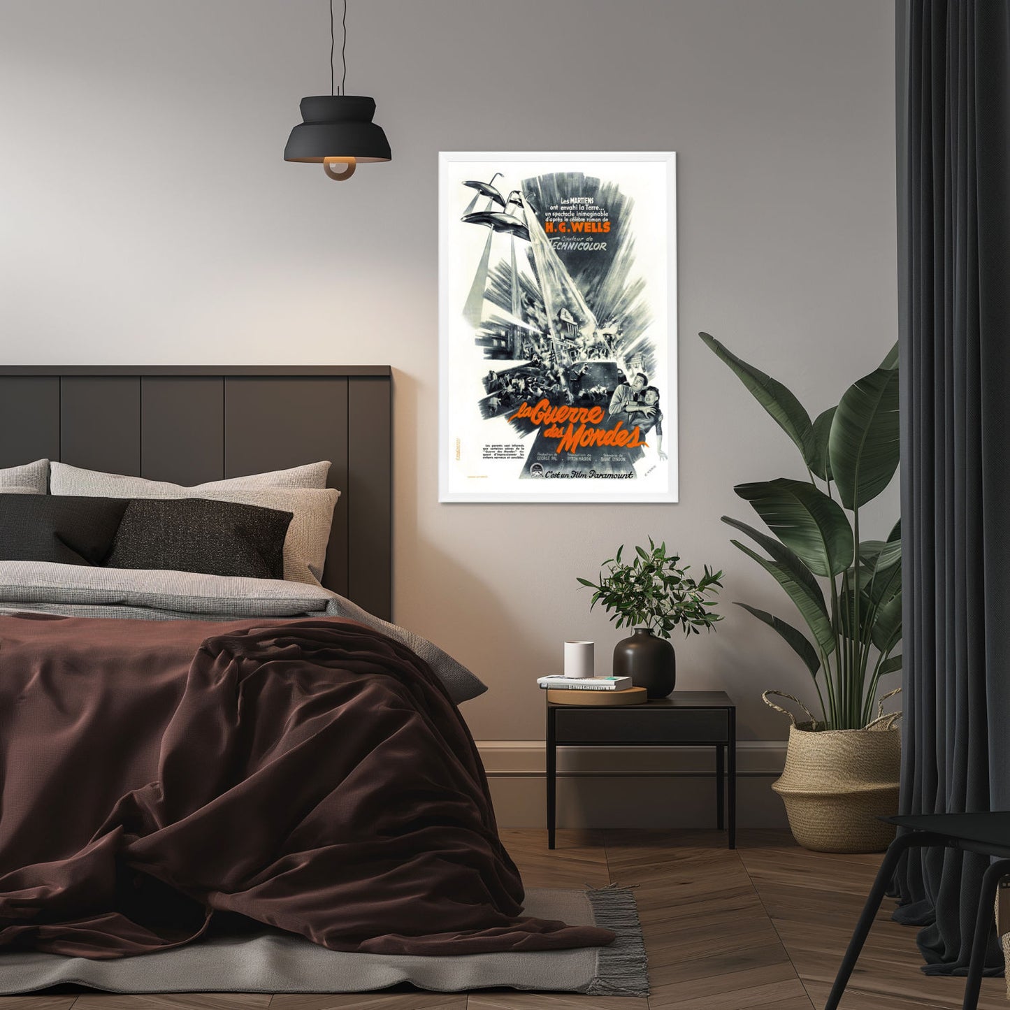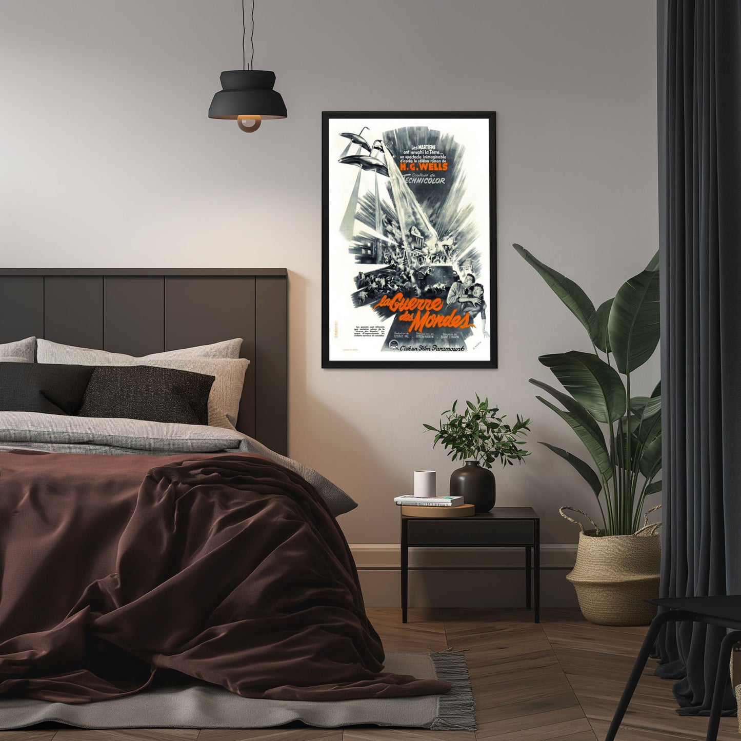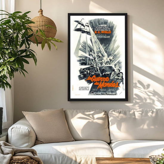 Capture the essence of classic science fiction with our framed "War of the Worlds" movie poster. This 1953 masterpiece bespeaks a golden era of cinema, transporting viewers back to the gripping tension of H. G. Wells’ extraordinary tale, vividly brought to life on the silver screen. As a high-quality reprint of the original French poster, it boasts a distinct vintage charm that digital prints can't replicate. The artwork enraptures with its pulsating energy and period-specific design, encapsulating the global fascination and terror that the movie inspired.