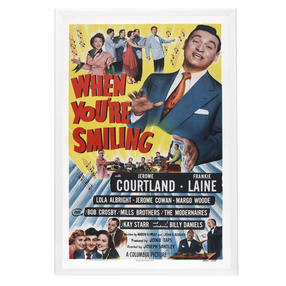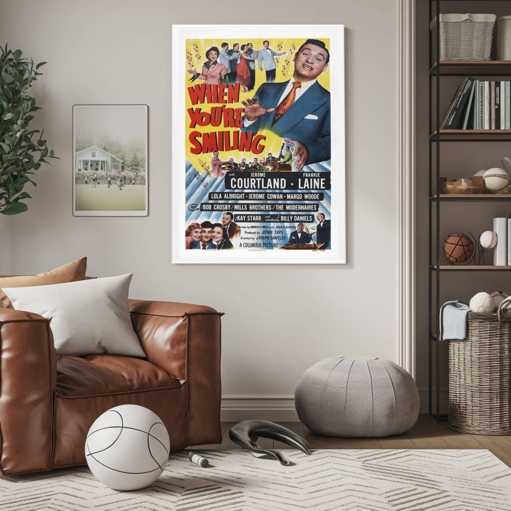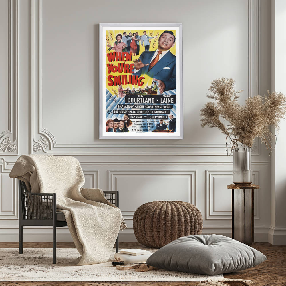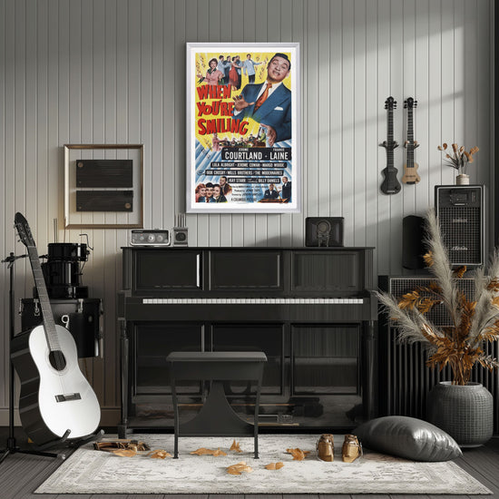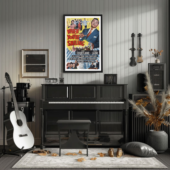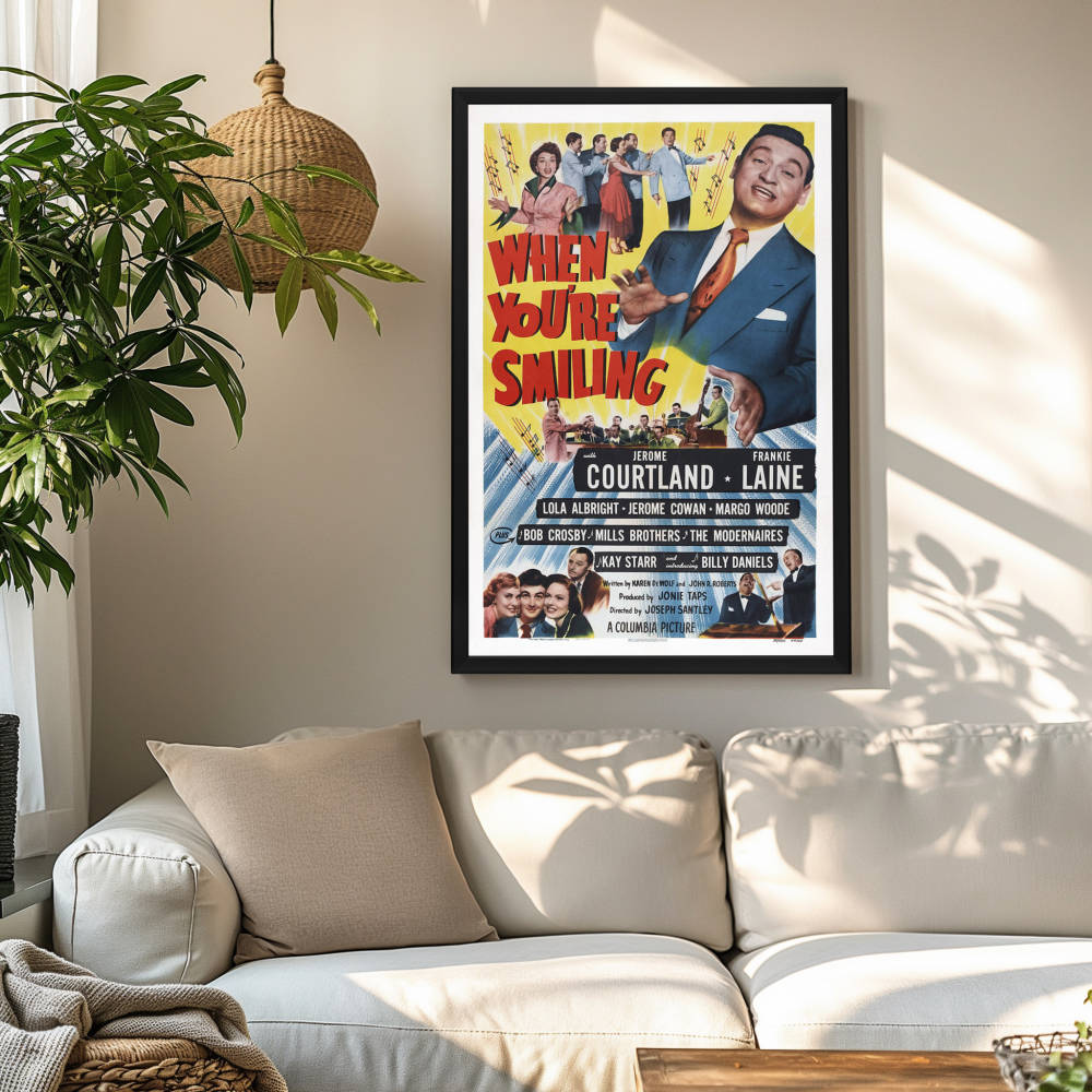 Immerse yourself in the nostalgic charm of the 1950s with our framed movie poster of "When You're Smiling," a cinematic tribute to the bygone era of classic Hollywood musicals. Celebrate the timeless allure of this star-studded film with our exquisite, high-quality reprint that captures the original poster's vibrant artistry and historical essence. Perfect for cinephiles and vintage art lovers alike, this poster is a true representation of the film's upbeat spirit and the Golden Age of cinema.