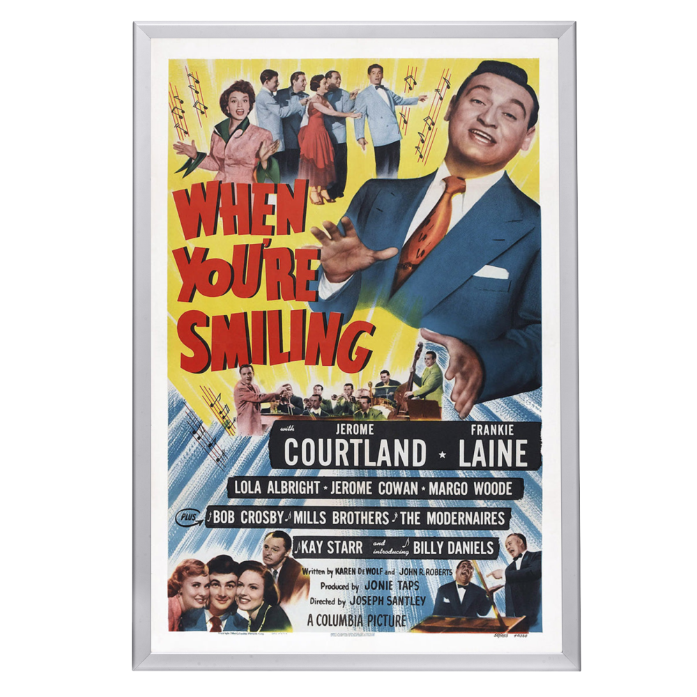 The combination of the "When You're Smiling" movie poster with the Snapezo frame creates a stunning and professional display that honors the film's legacy and brings a touch of vintage glamour to any space.