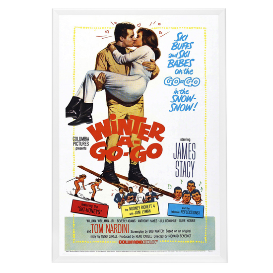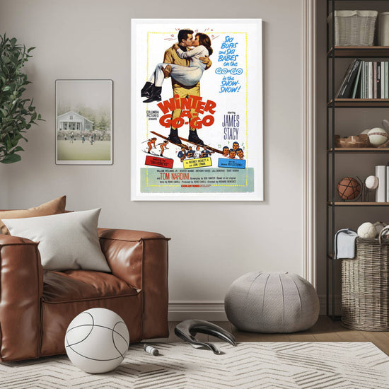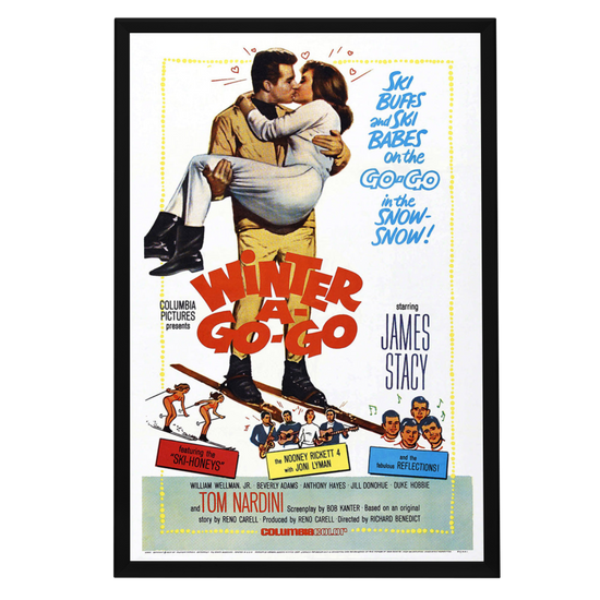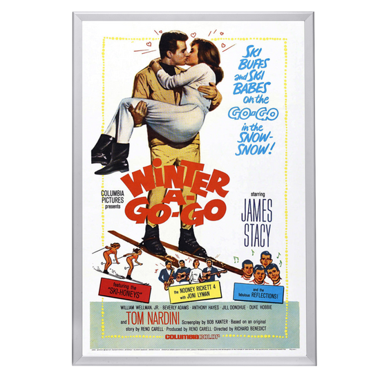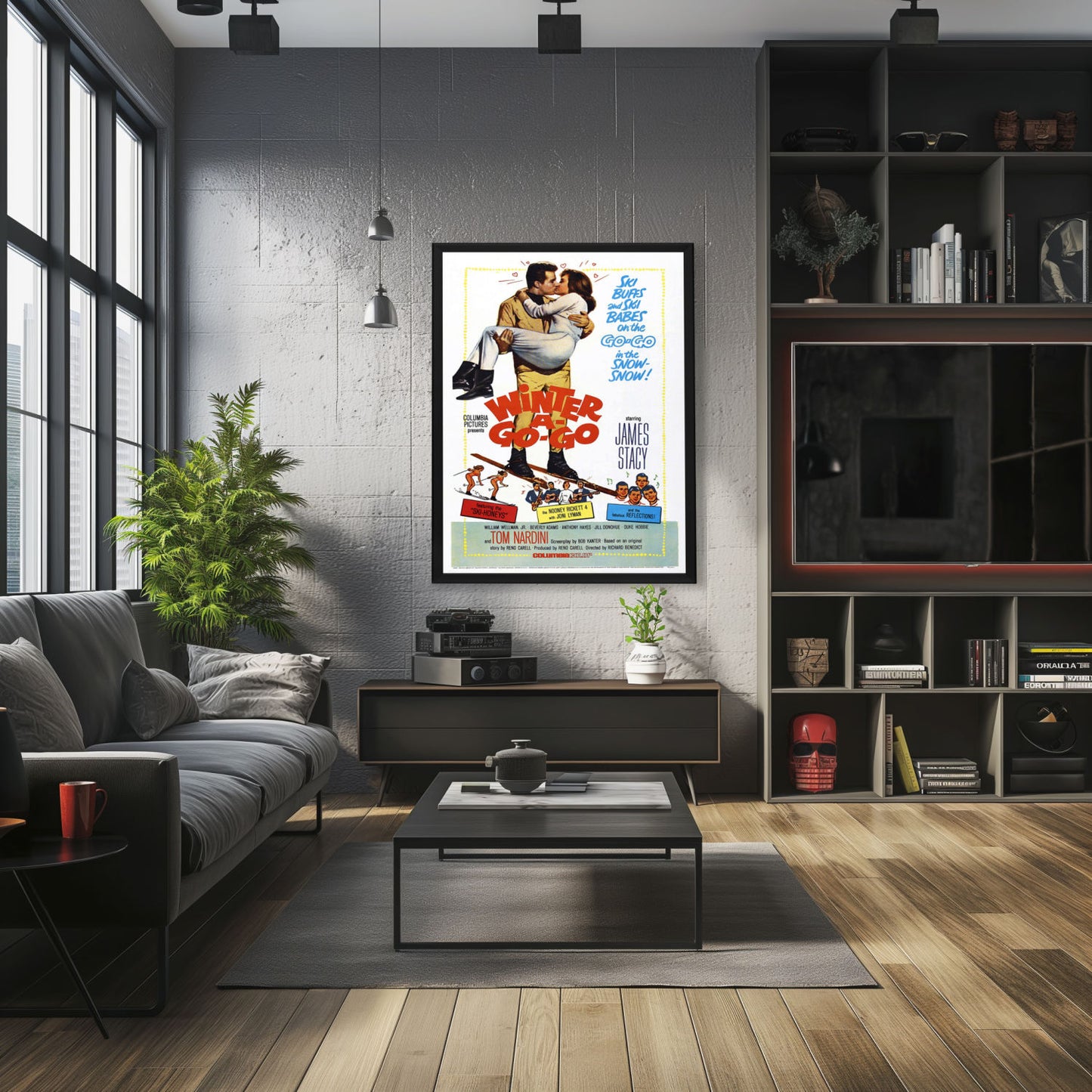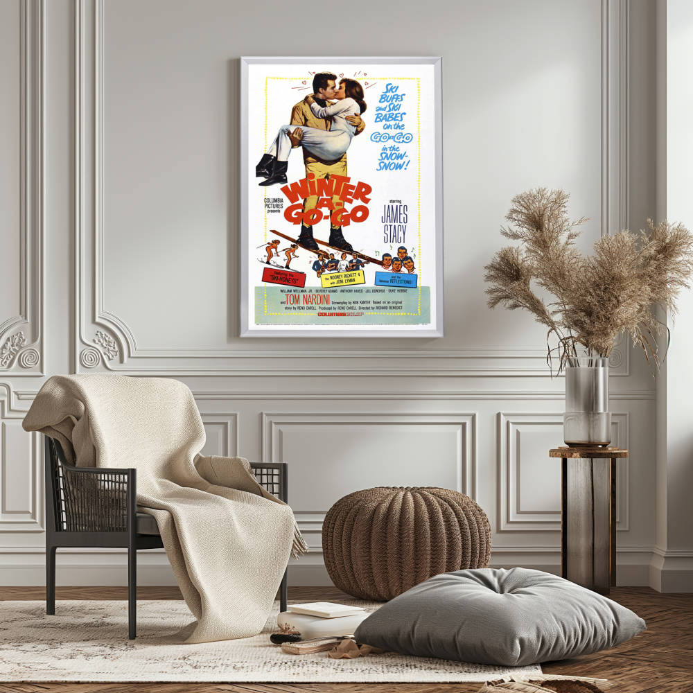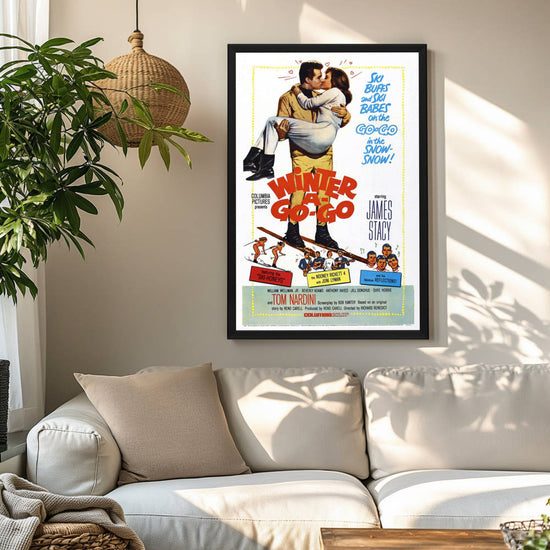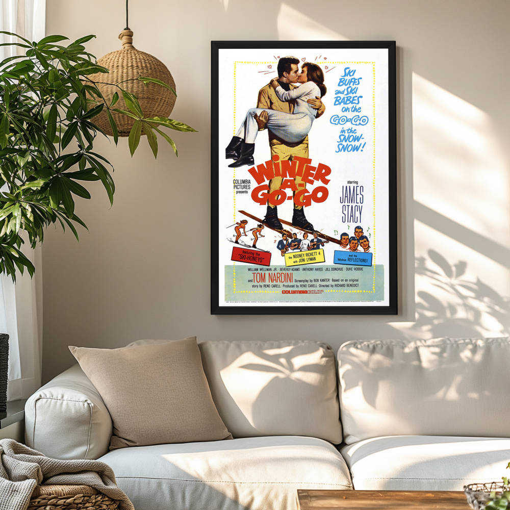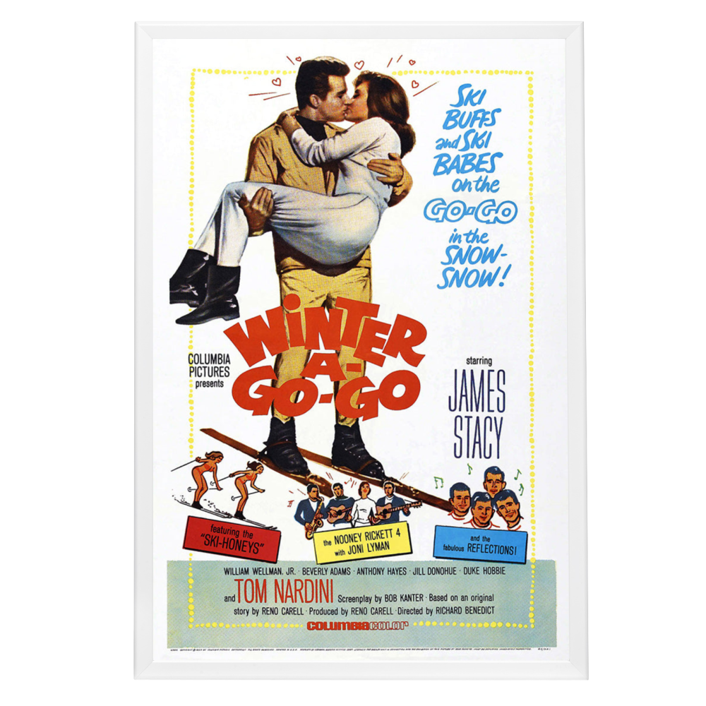 Step into the swingin' sixties with the vibrant and nostalgic reprint of the "Winter A-Go-Go" (1965) framed movie poster. Celebrating the joyous era of cool ski resorts and hot romance, this poster represents the fun-loving spirit of youth-centric films from the mid-sixties that combined the excitement of winter sports with the frolic of beach party vibes in a snowy setting.