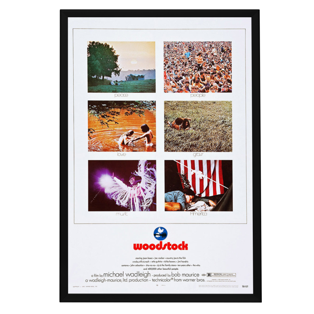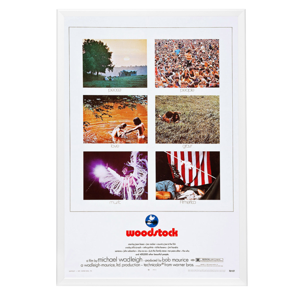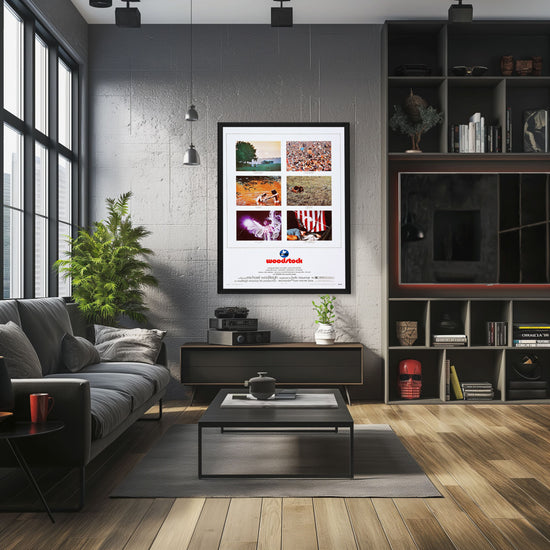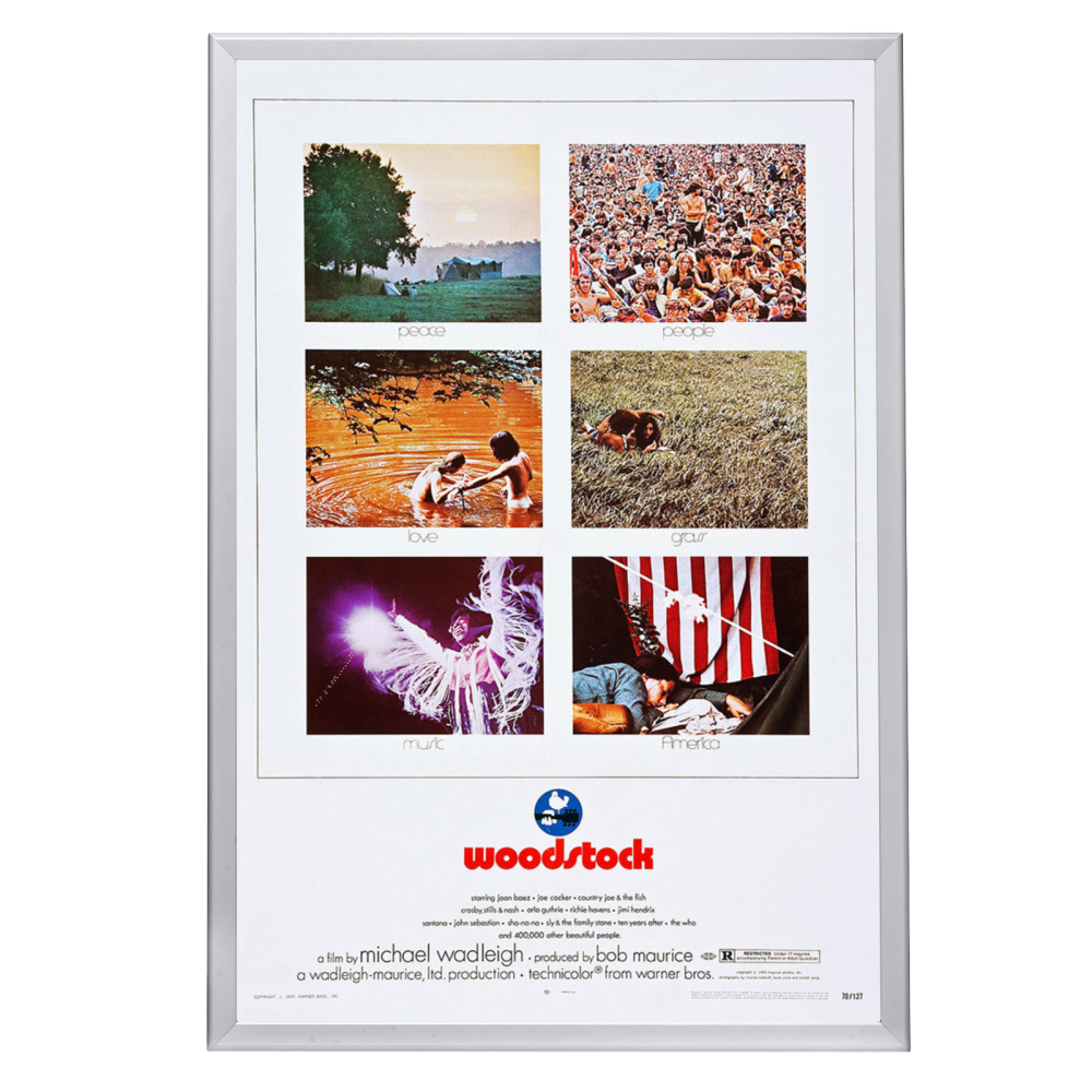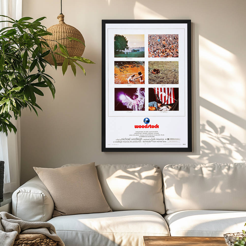 Own a piece of history with a high-quality reprint of the iconic "Woodstock (1970)" movie poster in a Snapezo Professional Frame. Vibrant, artistic, and protected.