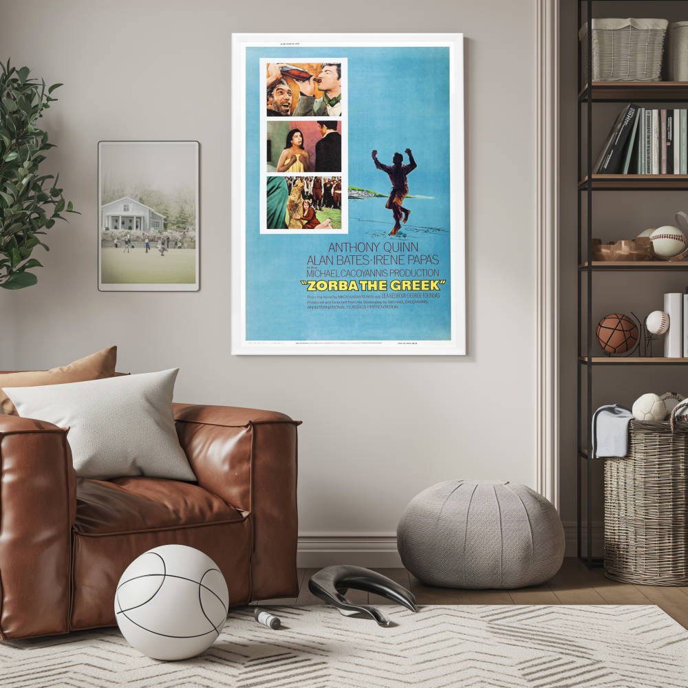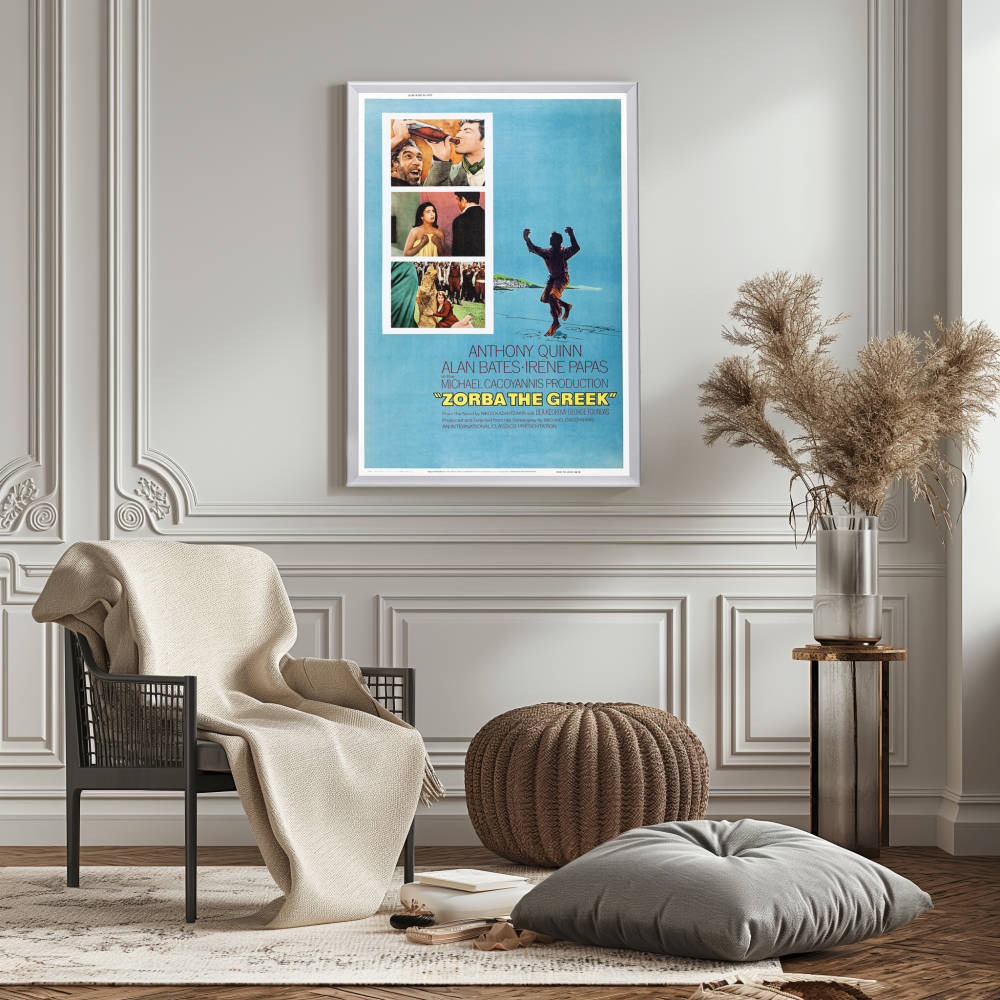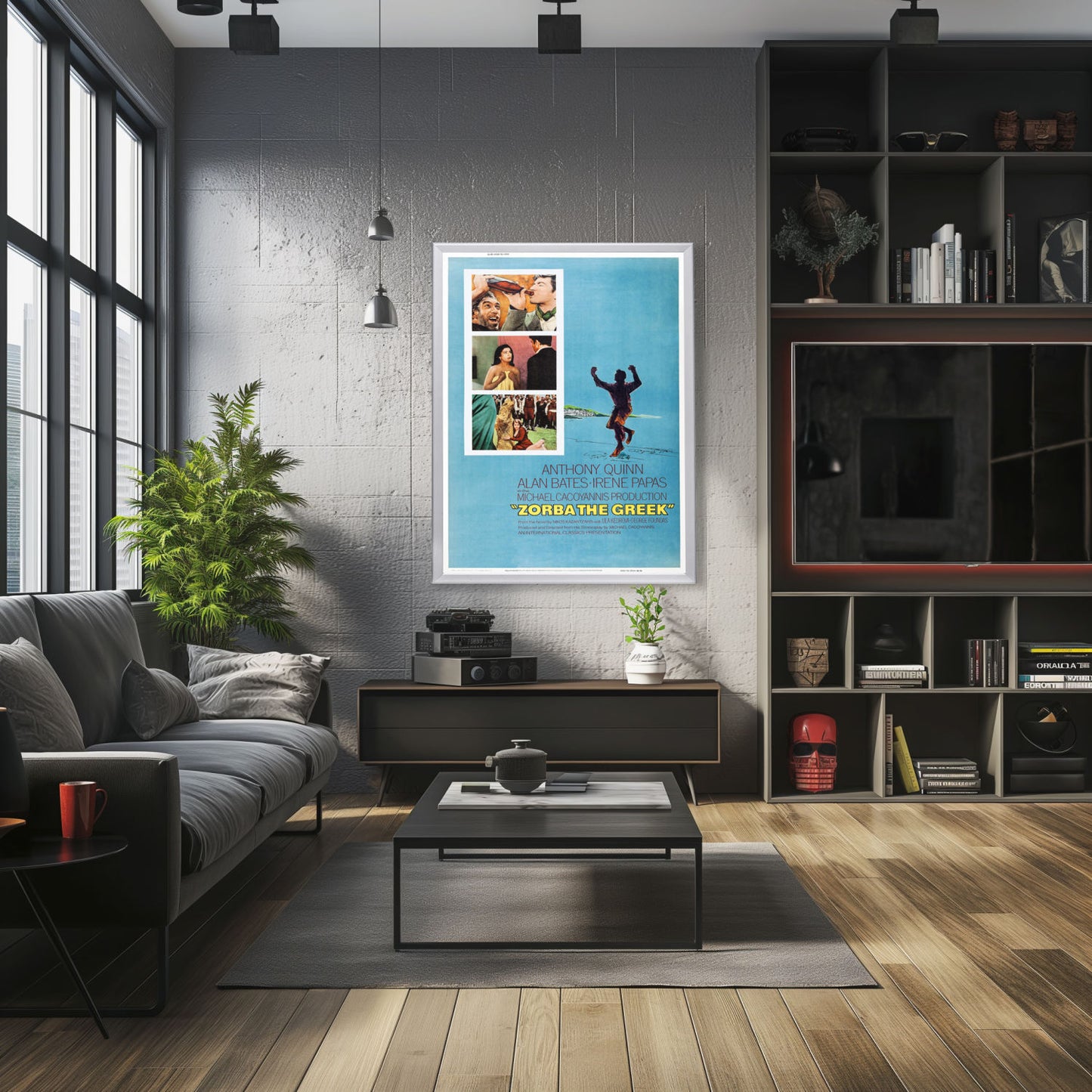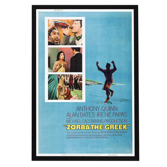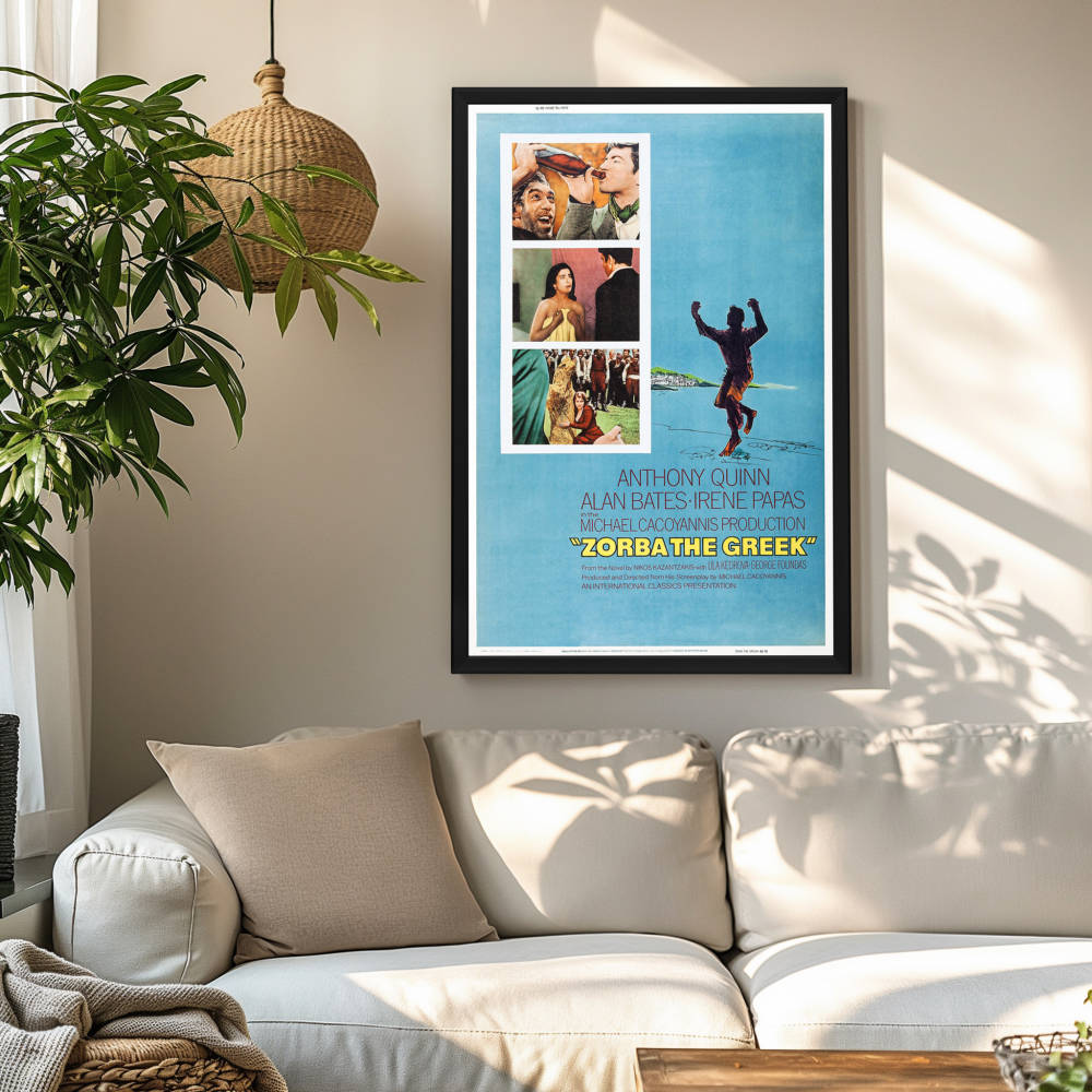 This framed "Zorba the Greek" movie poster is a conversation starter, a piece of history, and a work of art all in one. It is a splendid choice for collectors, film buffs, and anyone looking to bring a touch of classic cinematic flair to their decor.